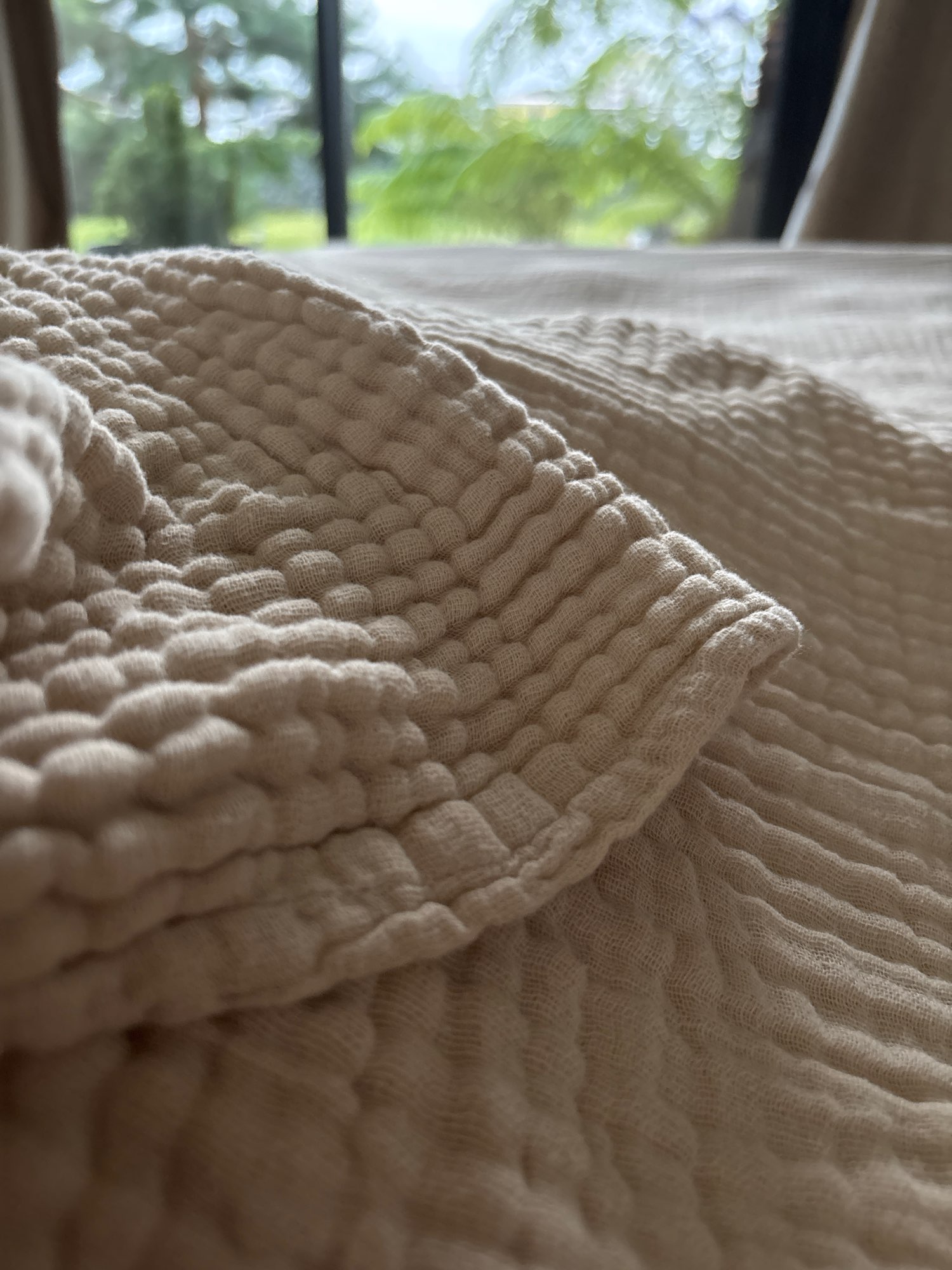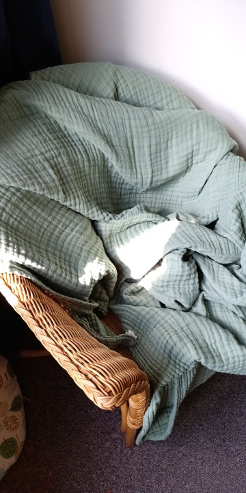 I love it! It feels great! 🌈 Thick yet airy and smooth. Great muslin blanket for hot summer. Mostly recommended. 🤩 ❤️