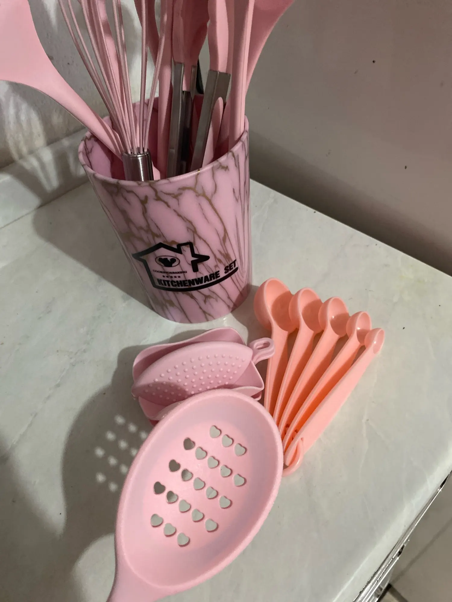 Just like the photo. They are really beautiful, all the holes are heart-shaped. I highly recommend this item. The shipping was very fast.