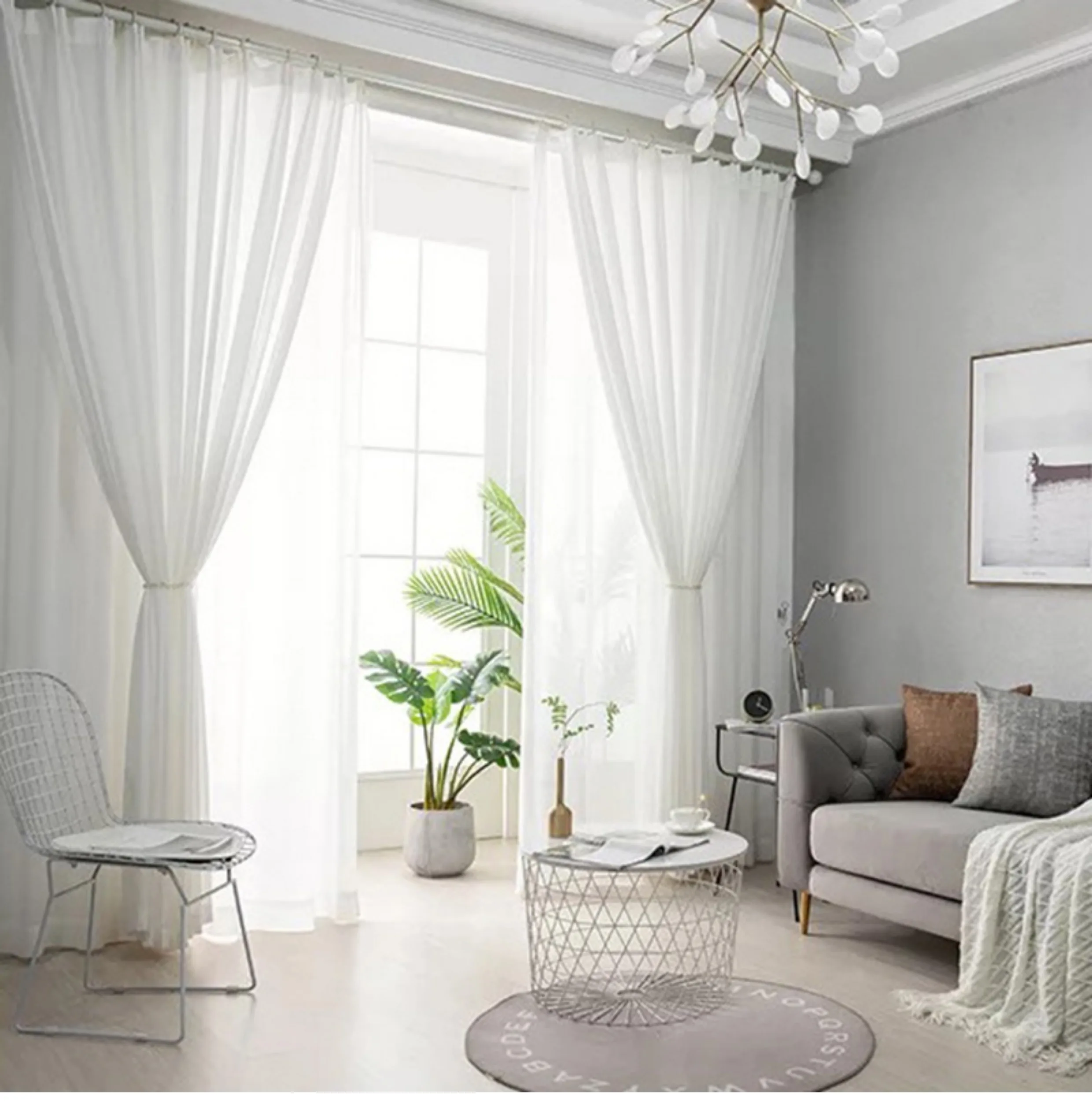 1pc Fluttering Soft Solid White Chiffon Tulle Yarn Curtains