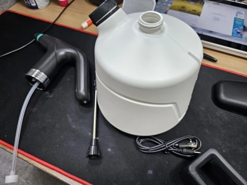 I used a pump type when washing my car, but it was very inconvenient. While searching for a wireless sprayer, I found this product and it's convenient and great. The downside is that the buttons are small.