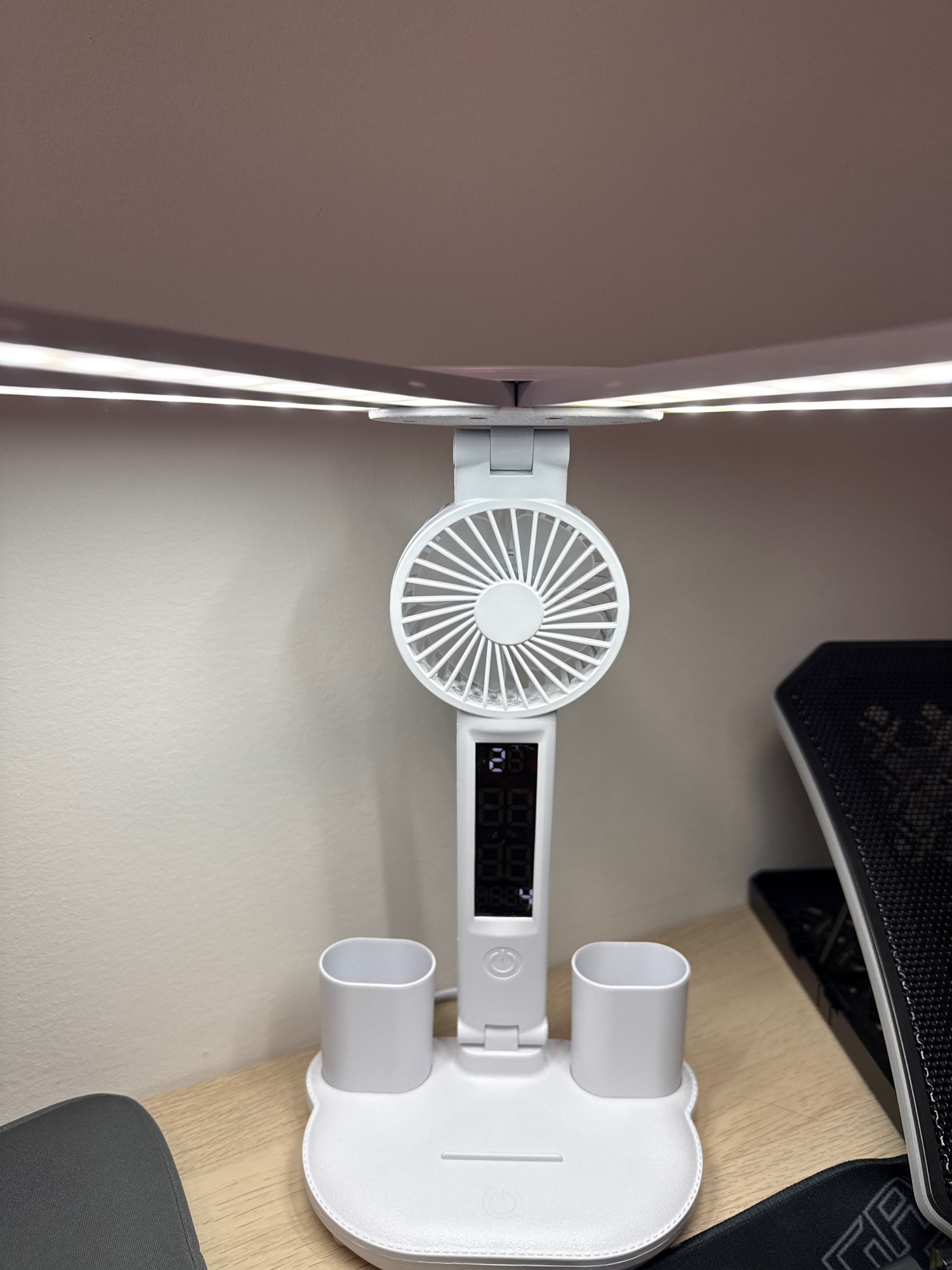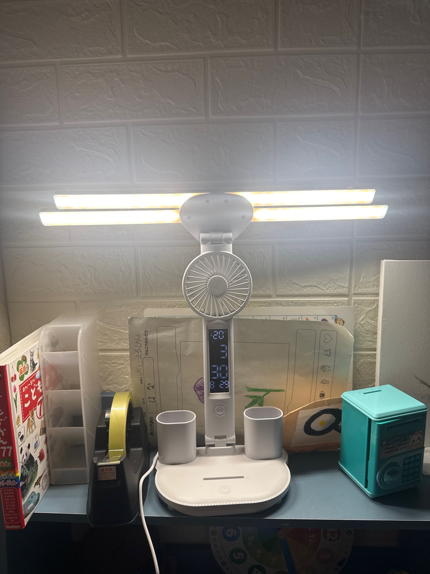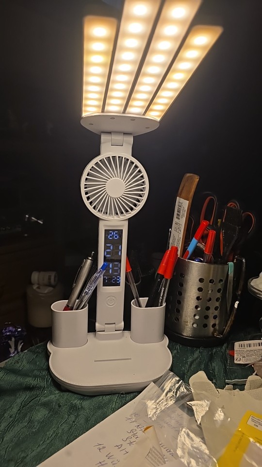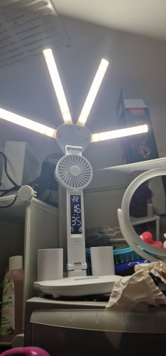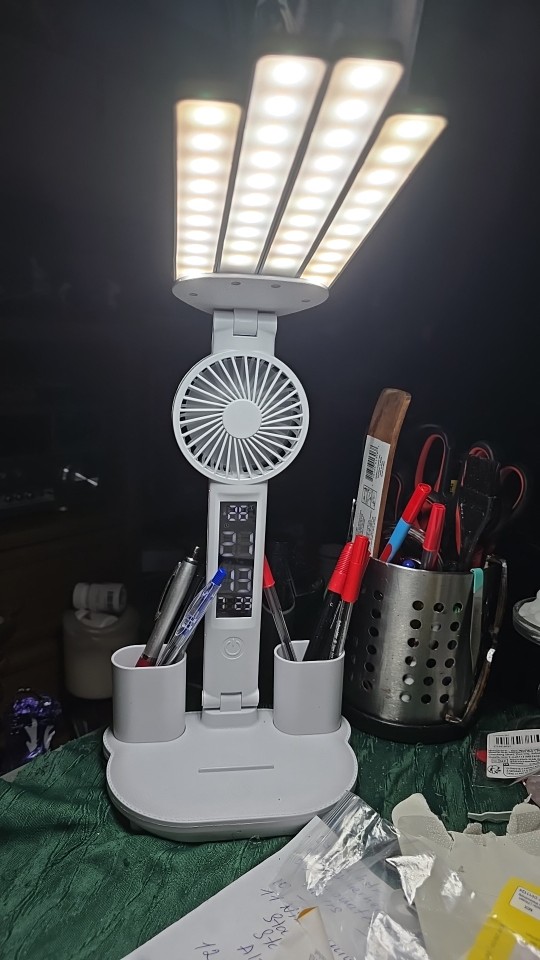 I really liked the lamp. The clock, fan, light all work. The child is very happy. Bought it for studying. The light is good, if it's hot, you can turn on the fan. The time is always at hand. Very satisfied with the purchase.
