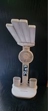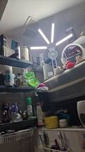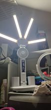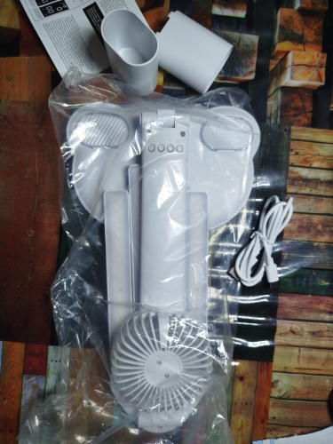 The lamp is small but exquisite. The lamp has three light levels: cool white, yellow, and warm white. The fan also has 3 speed levels, operates quietly, cools well.