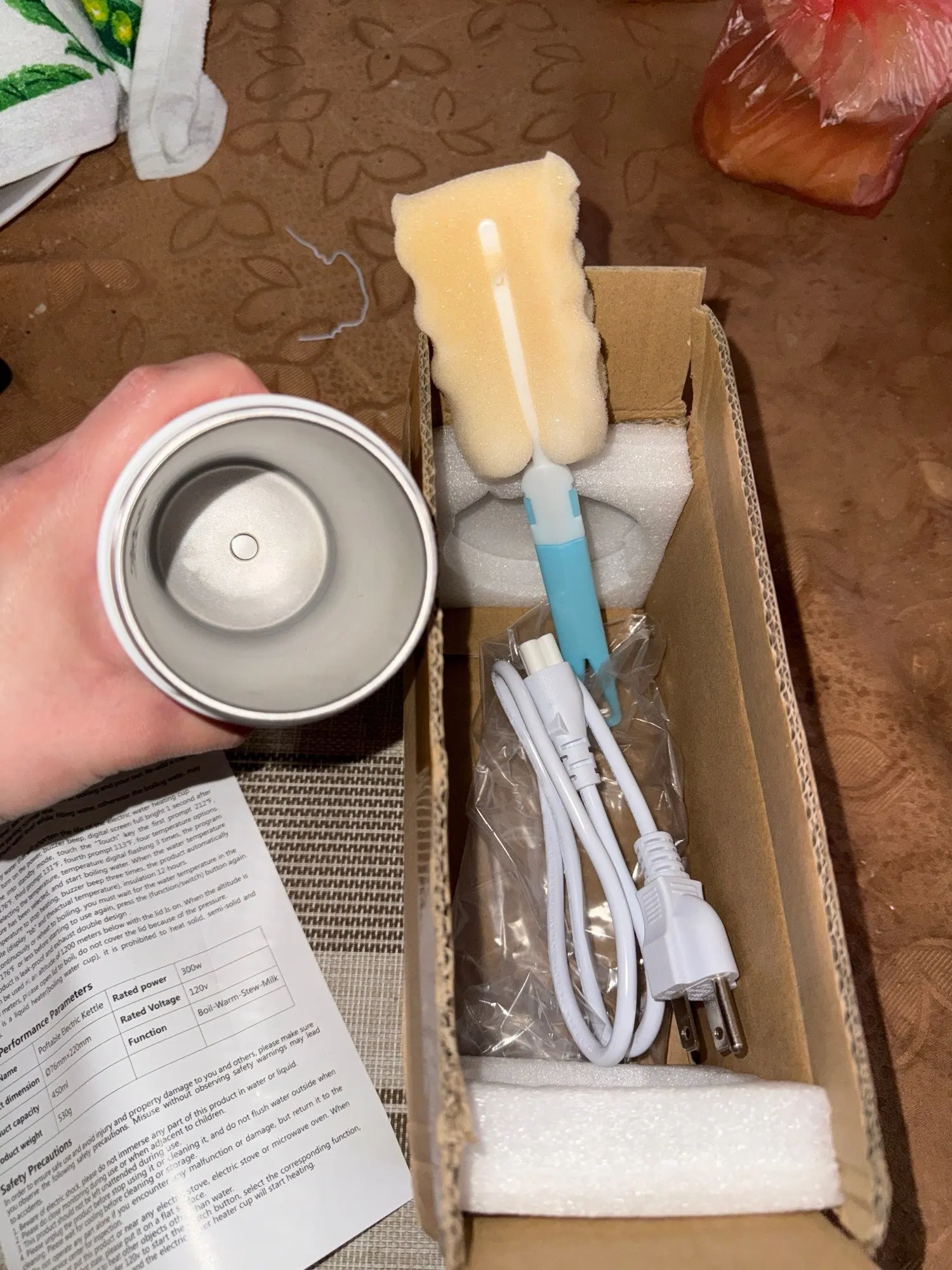 The product came well assembled and with its cleaning sponge. The power cord is US type and the extension is not long but also not short; made of stainless steel and has 4 modes for heating water (or any liquid). Just be careful because although its capacity says 500 mg, you cannot fill it to the 500 mg where it is marked since you must leave it uncapped when it's boiling and doing so causes water to splash everywhere. All these details in the product do not detract from its value at all. It meets all my expectations, I would have wished for a larger version but overall it was a very good purchase. I RECOMMEND! 🙌🏻
