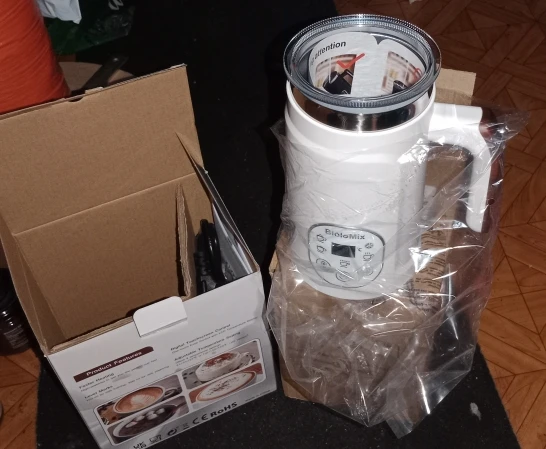 It arrived properly in the manufacturer's box. The packaging condition is fine. I purchased a US plug, so the temperature is in Fahrenheit, but since there are only three settings, there's no particular problem. It makes very fine foam milk, so I highly recommend it. The operation method is slightly peculiar. When you press the power button and select a mode, it starts moving on its own after a while. It's a bit inconvenient not being able to decide the start timing yourself. Also, it seems that the main body cannot be fully washed, so handling might be a bit inconvenient.