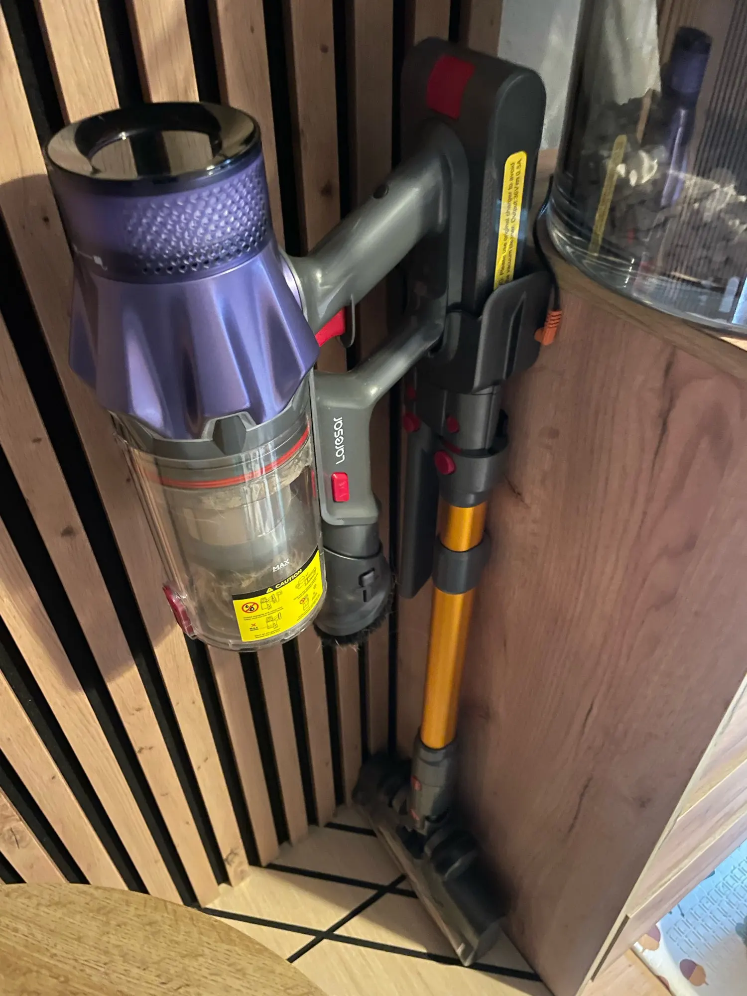 The vacuum cleaner works very well. It handles tiles, panels, and carpets well. The only downside is the battery, which runs out quickly. Overall, I recommend it.
