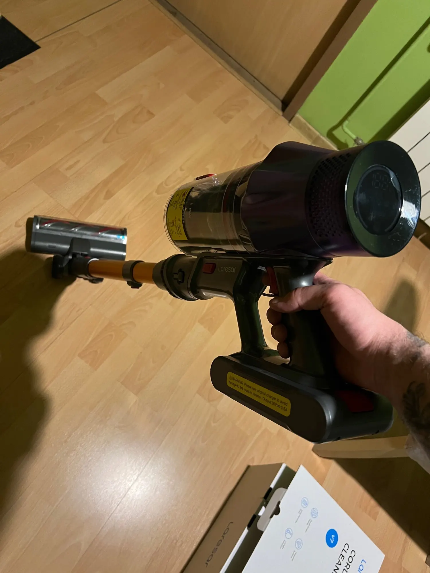 Iām very happy with the purchase, the vacuum cleaner is awesome, cleans very good, recommend the seller, the white light helps you to see the dust very easily