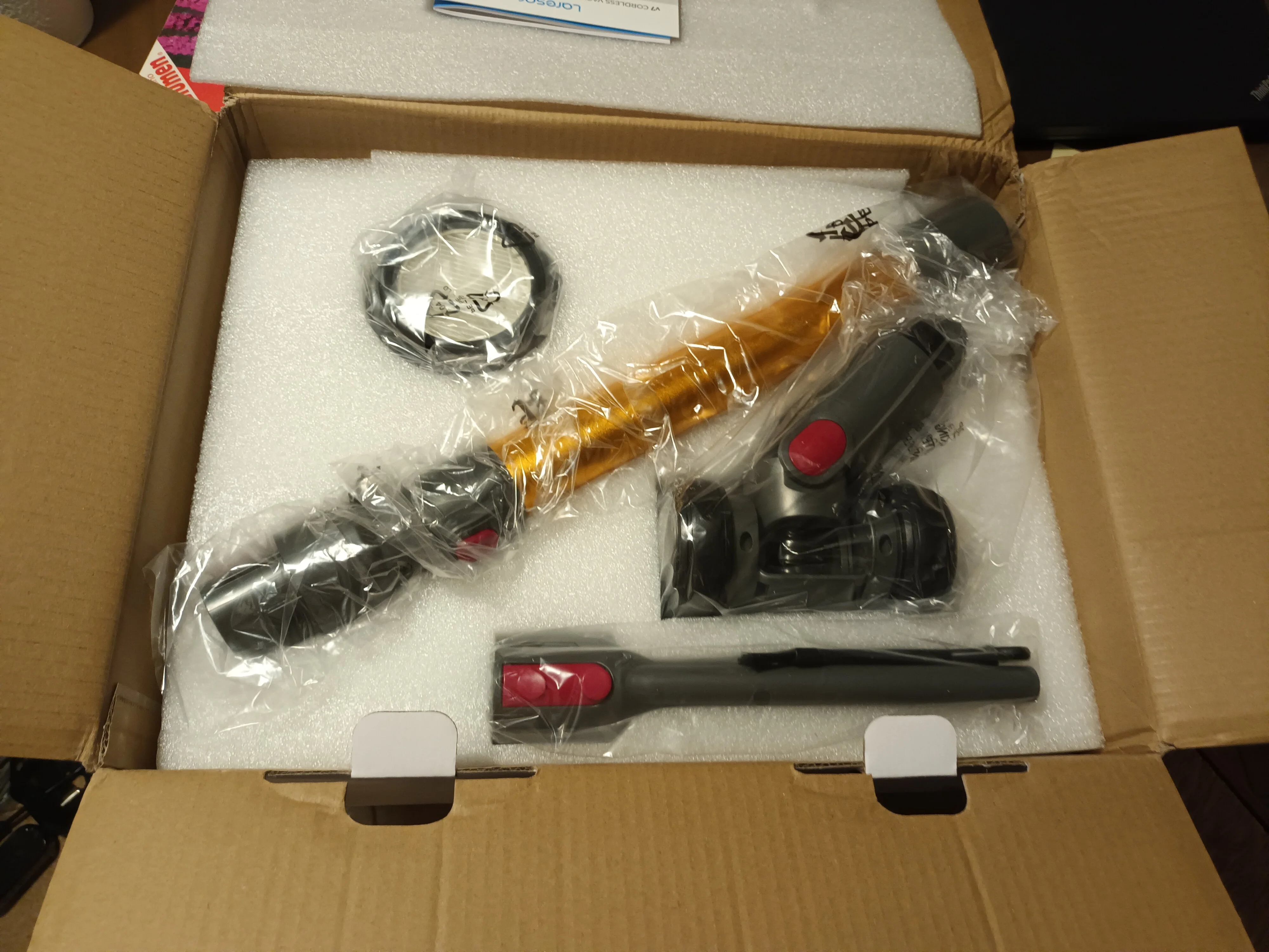 The package arrived very quickly. Very well secured. I'm just starting to test the vacuum cleaner, but so far everything seems to be working as it should. It draws very well even at the slightest power. The only caveat I have is with the built-in brush head because the suction power is no longer as efficient - the brush should be designed differently. But when it comes to a long pipe and a small narrow one, it's definitely okay. You have to consider that the vacuum cleaner weighs a bit, but it's manageable. I recommend