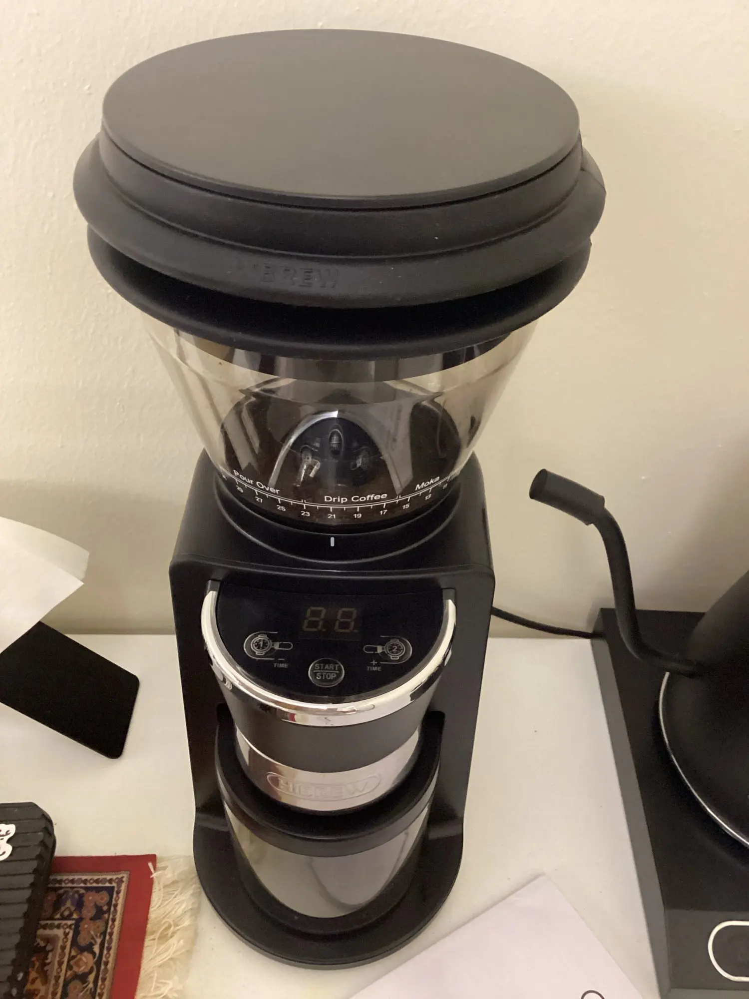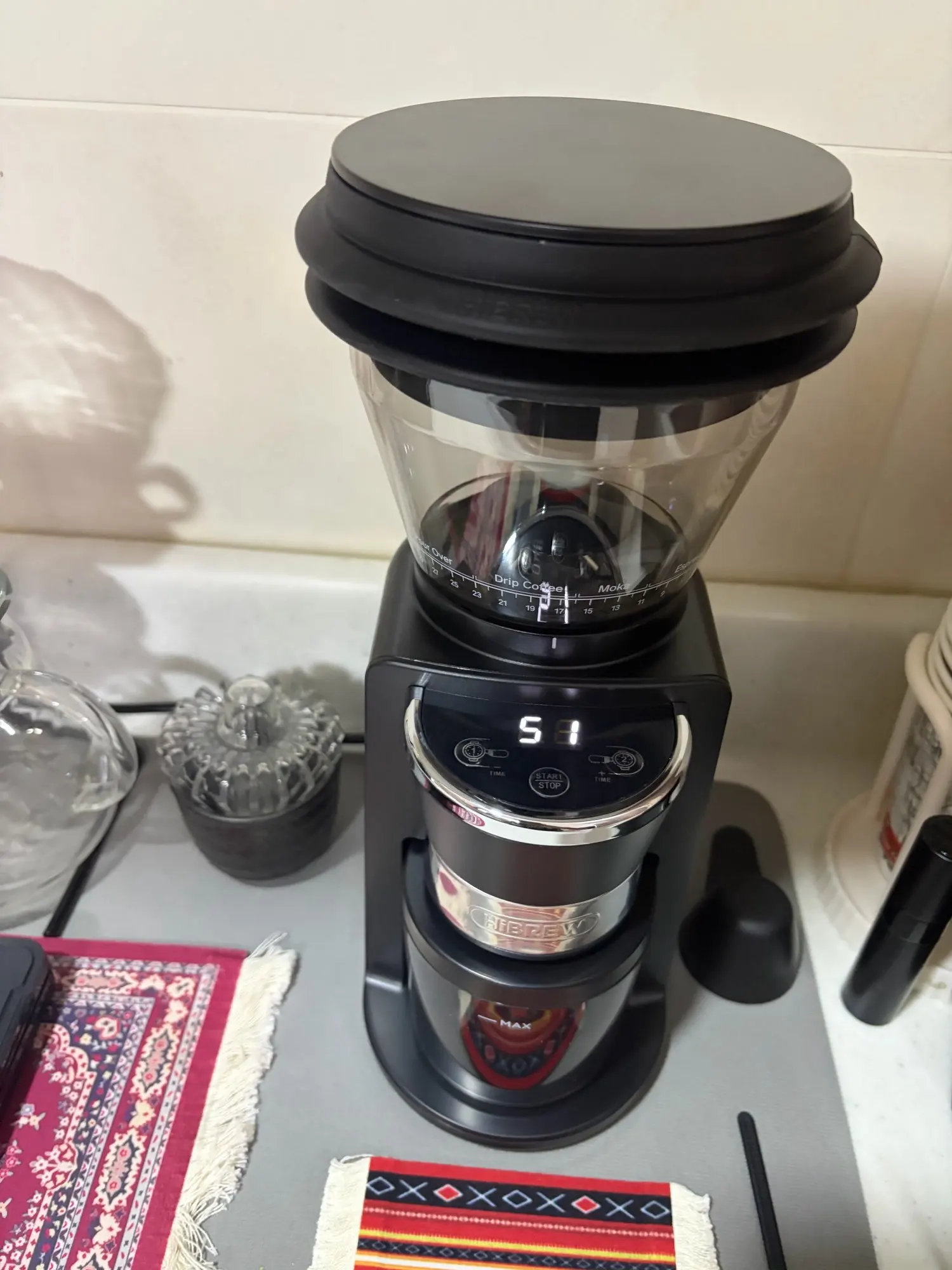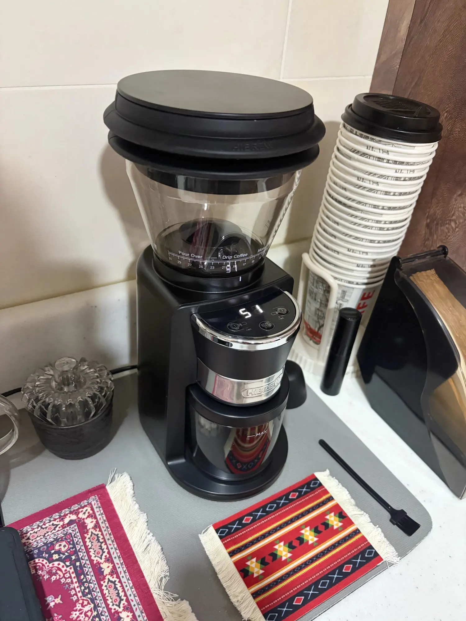 Very beautiful and its grinding is excellent, but there is a downside which is the scattering and staining of the coffee corner due to the fine grinds, but overall it's excellent for its price.
