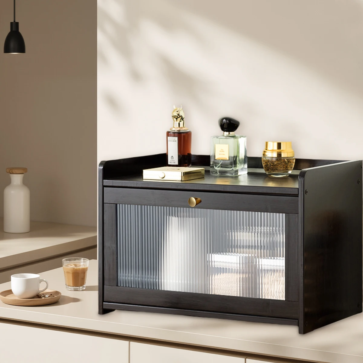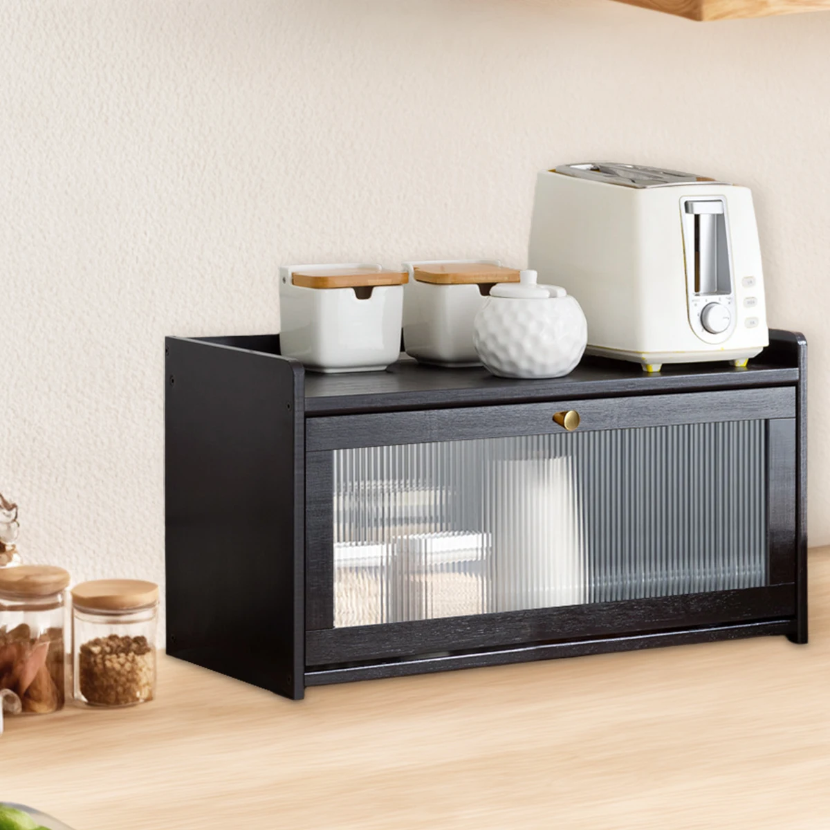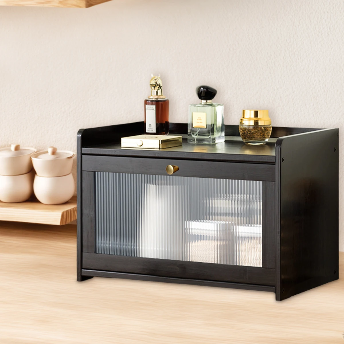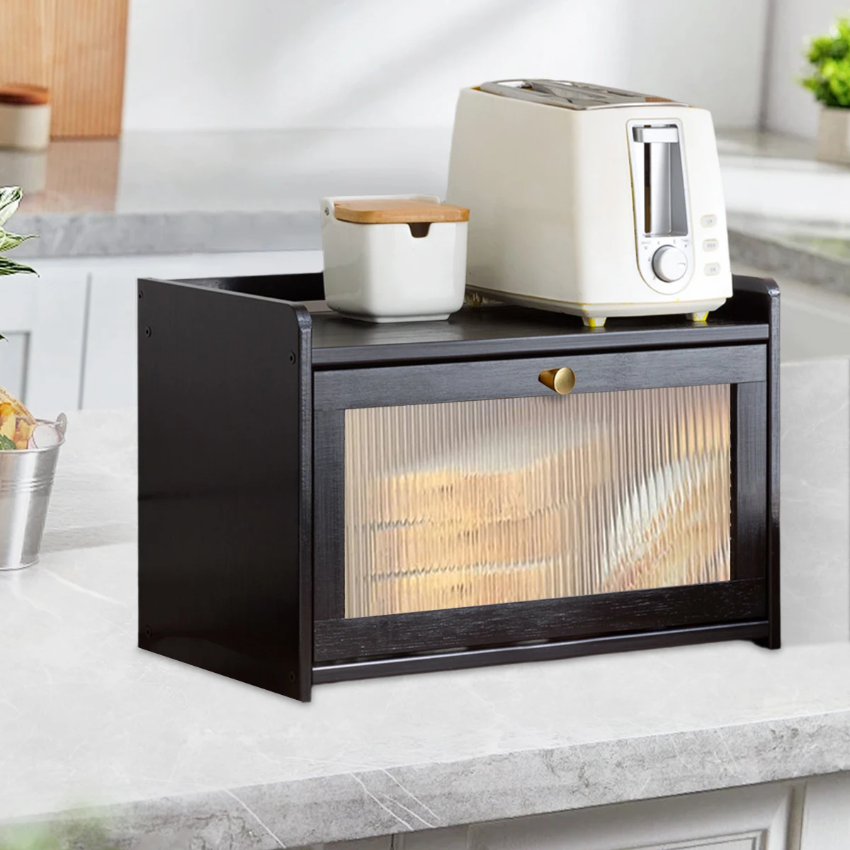 Bamboo large capacity bread box With Acrylic Door
