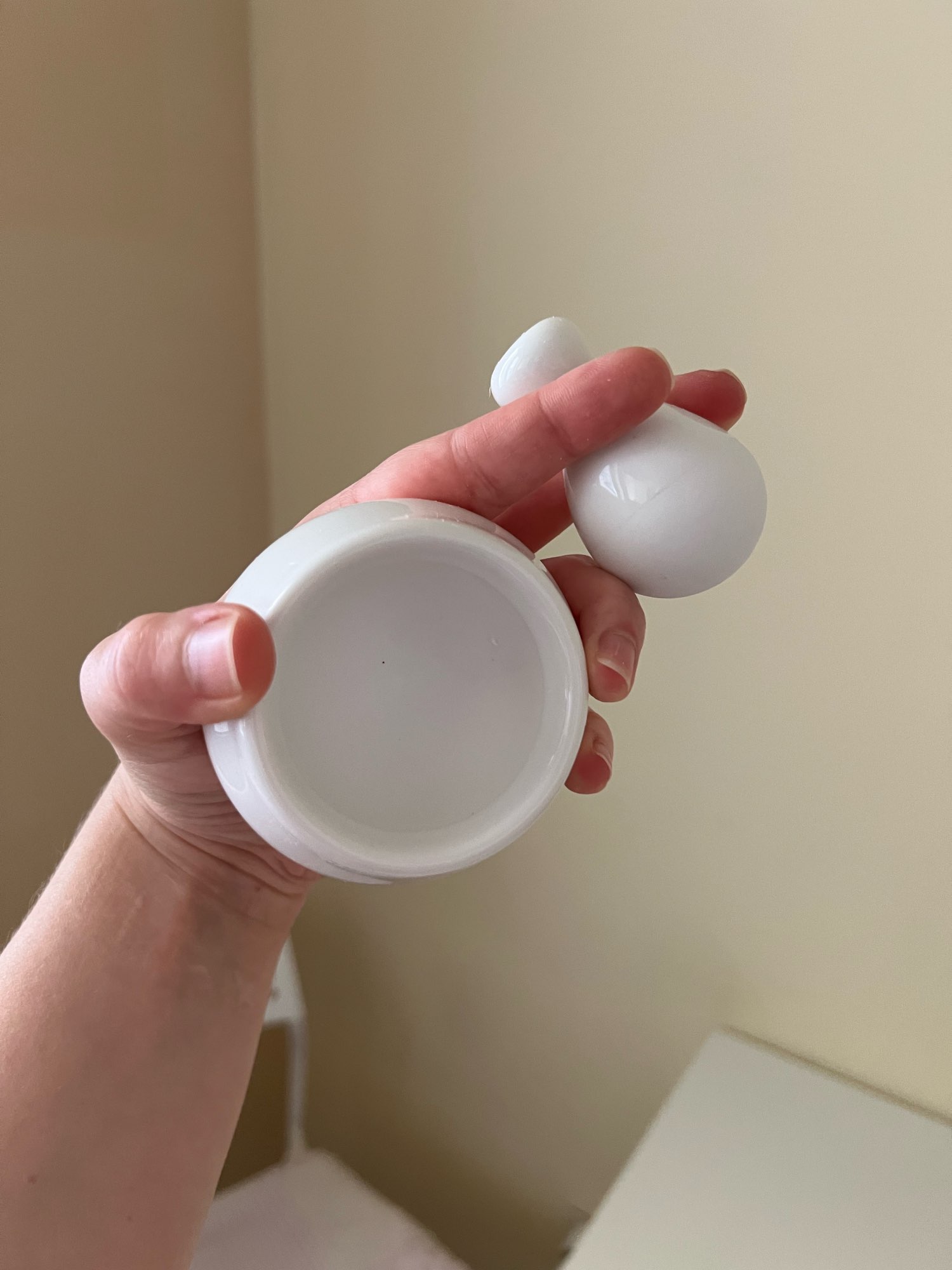 It's cute. Works for small quantities. The pestle is rather thin and small to grip - something to consider for the health of your hands.