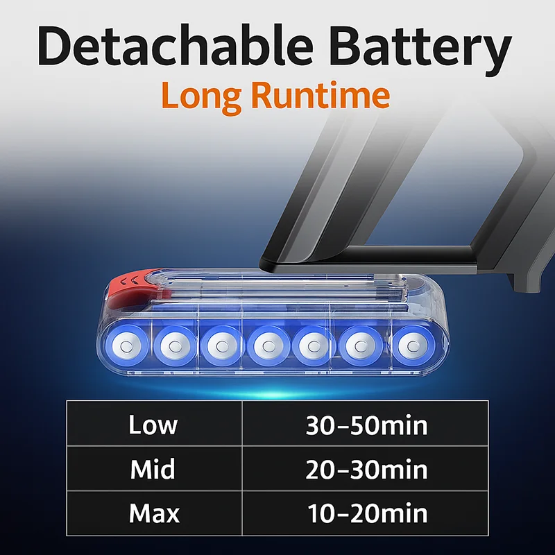 Detachable & Replaceable Battery – Long Runtime for Whole-House Cleaning