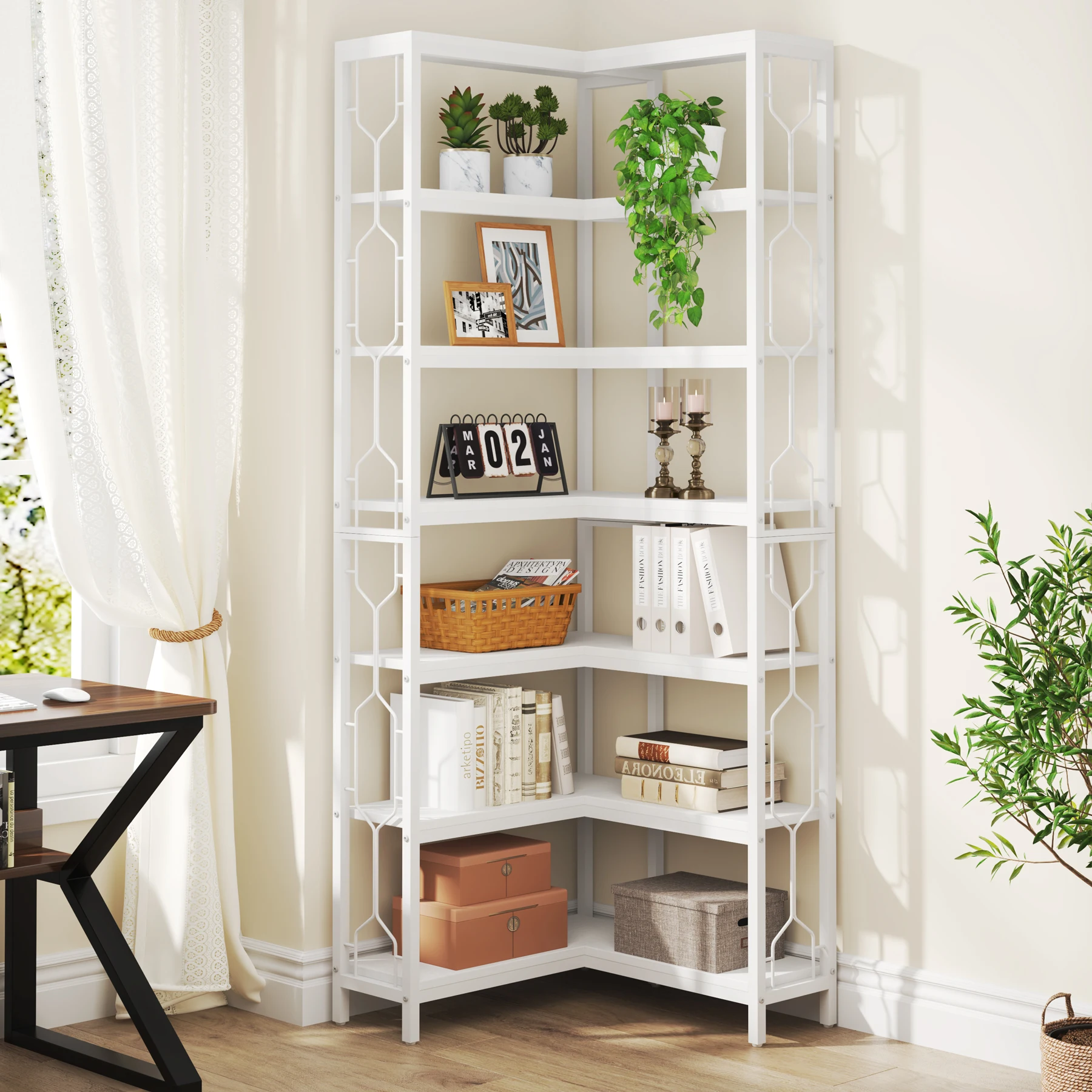• QUICK AND SIMPLE ASSEMBLY: Coming with labeled parts and illustrated instructions, making assembly of this corner storage rack a breeze. We provide a 18-month warranty and friendly customer service, so if you have any questions, Tribesigns will gladly provide a satisfactory answer.