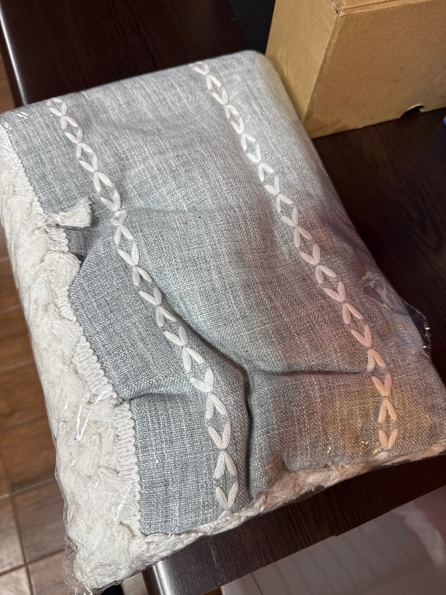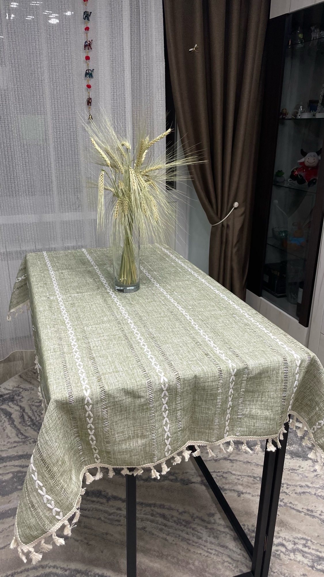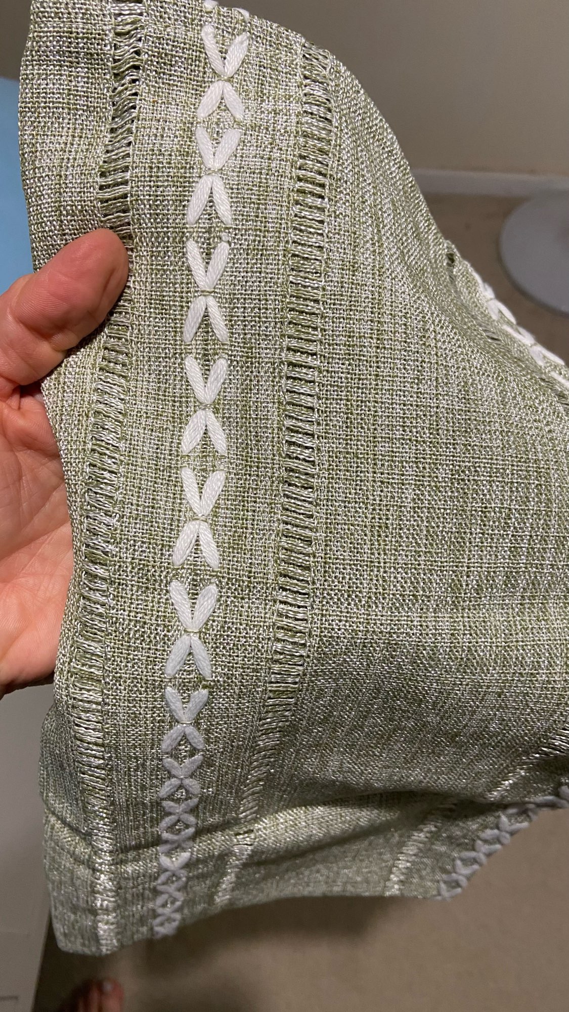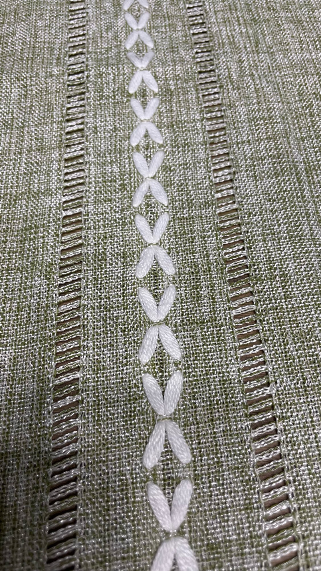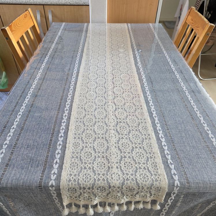 Beautiful tablecloth. The only issue is that the white embroidery threads are uncoated and absorb dirt.