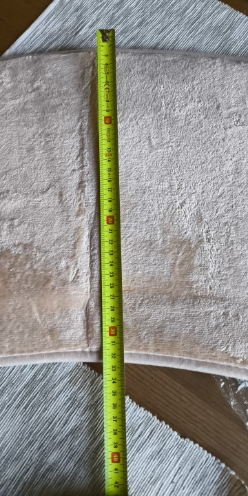 The width of the carpet is not 40cm as mentioned but between 30 and 32cm: it's a bit small! Otherwise, the carpet is soft and the color is accurate. We'll see in use for the quality.