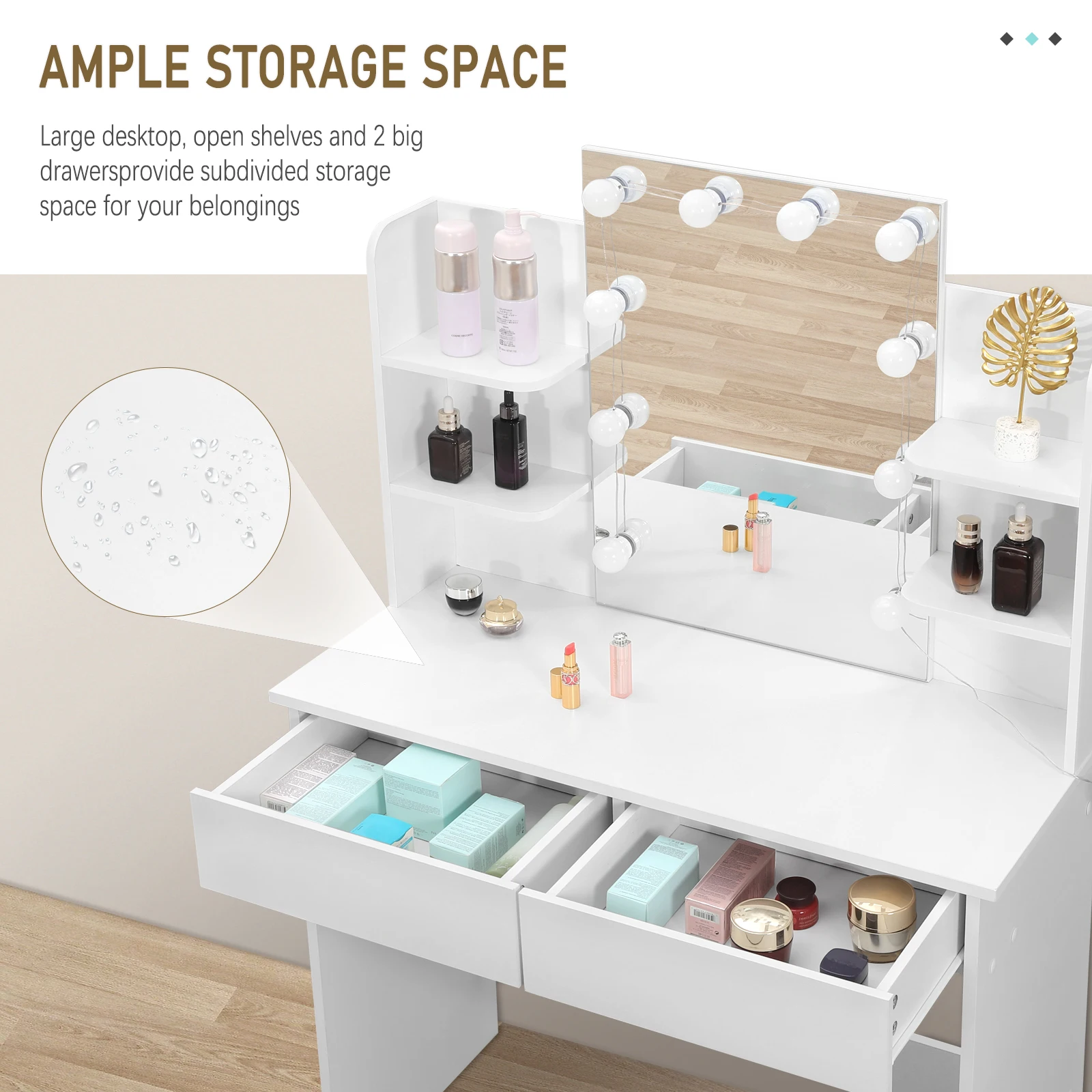 Dressing Table with LED Mirror 2 Drawers 4 Storage Shelves