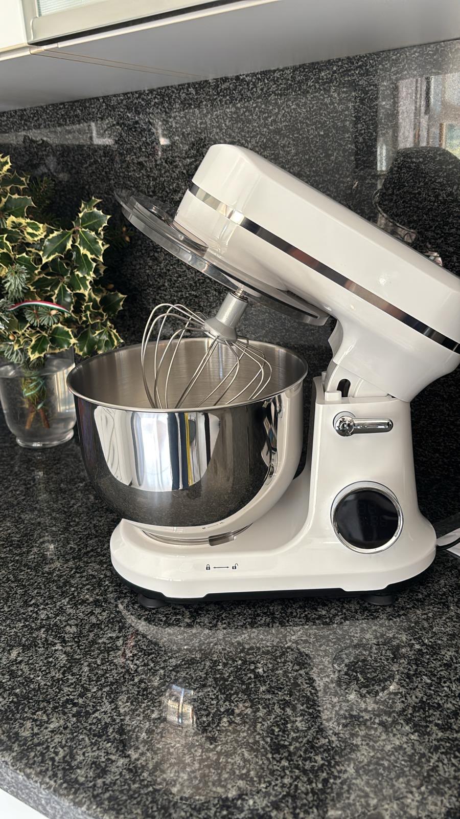 【5L Capacity】Stainless steel mixing bowl offers enough capacity. With a dough hook, flat beater, whisk, and pouring shield avoiding mess kneading process. Enjoy easy cleaning with dishwasher-safe parts, saving you time and effort. Perfect for baking for a family or a crowd.