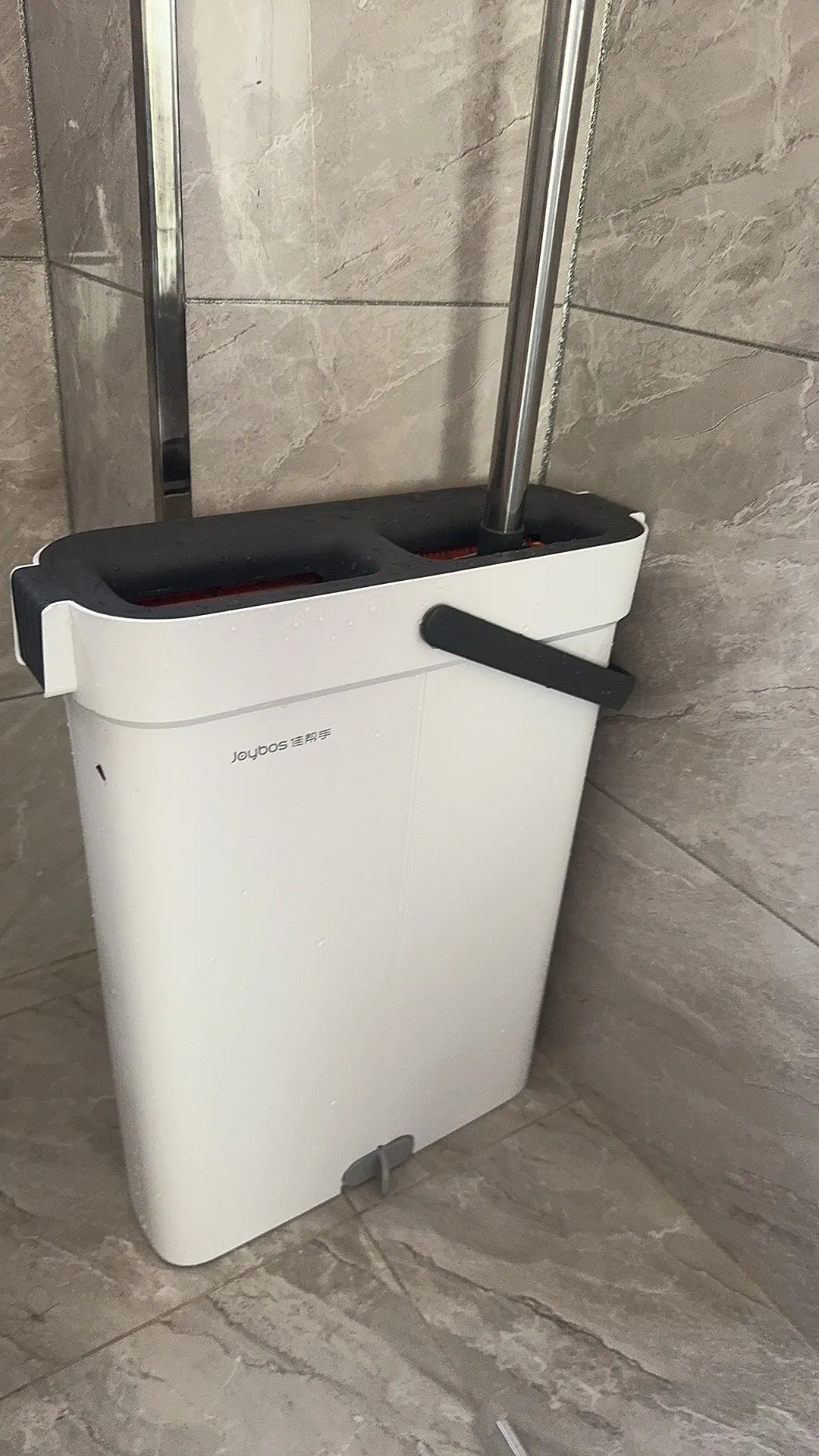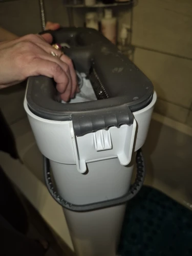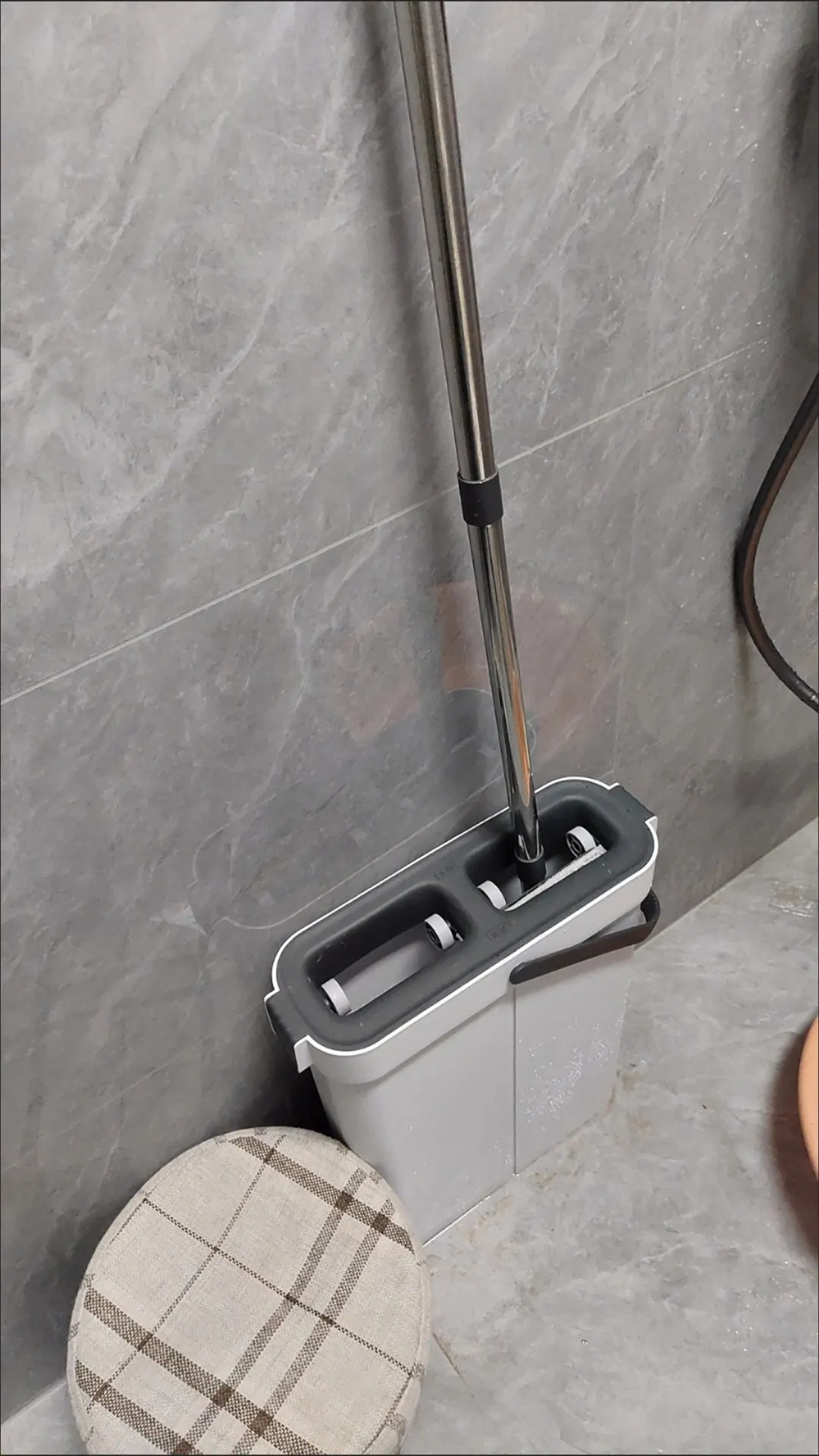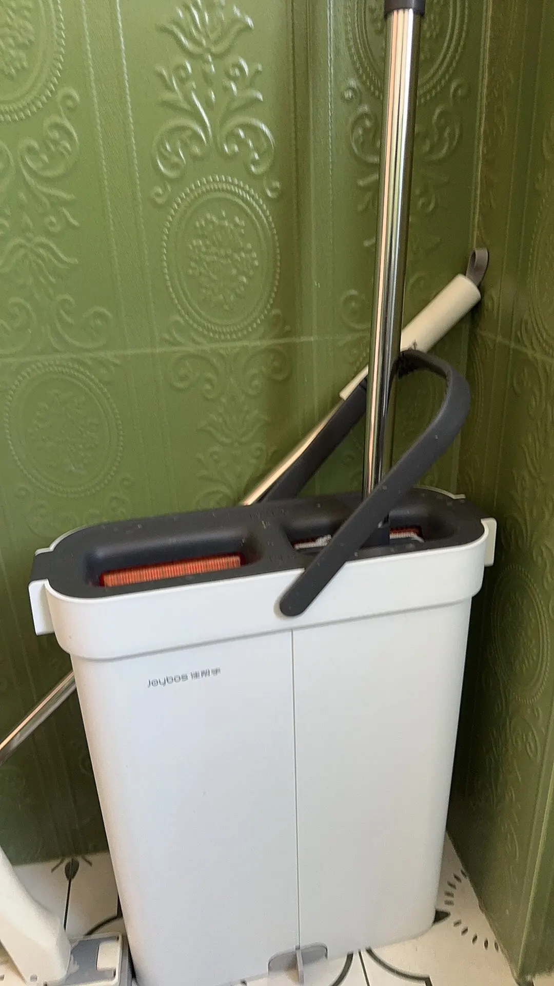 This product is a really good flat mop and water bucket. The mop head is very effective for cleaning corners between the floor and wall. It's lightweight, and the mop head is easy to attach. When mopping, you need to move the head around and occasionally tighten the handle with screws. But it's not enough to deduct one star. The cleaning part of the water bucket is very effective at removing dirt and debris from the mop head, and the drying part sends most of the water back to the cleaning part, so there's no need to refill water until it gets too dirty. When cleaning wooden floors, the drying part of the water bucket removes most of the water. Highly recommended.