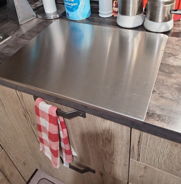 Very nice and useful, perfect size, in my opinion it looks good in any kitchen, making it more elegant and professional. I used it for slicing and it didn't get scratched, but I placed a jar on it and it slightly scraped it. The scratches are only visible if you look very closely. From a distance, it's a nice product.