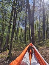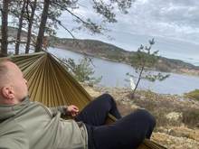 very comfortable and so far reliable hammock. looks very thin, but holds the weight. this takes up very little space in the backpack. I recommend.