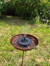 Small fountain that works well, no battery as soon as there's a cloud everything stops. Item matches the description. Fast shipping Thank you