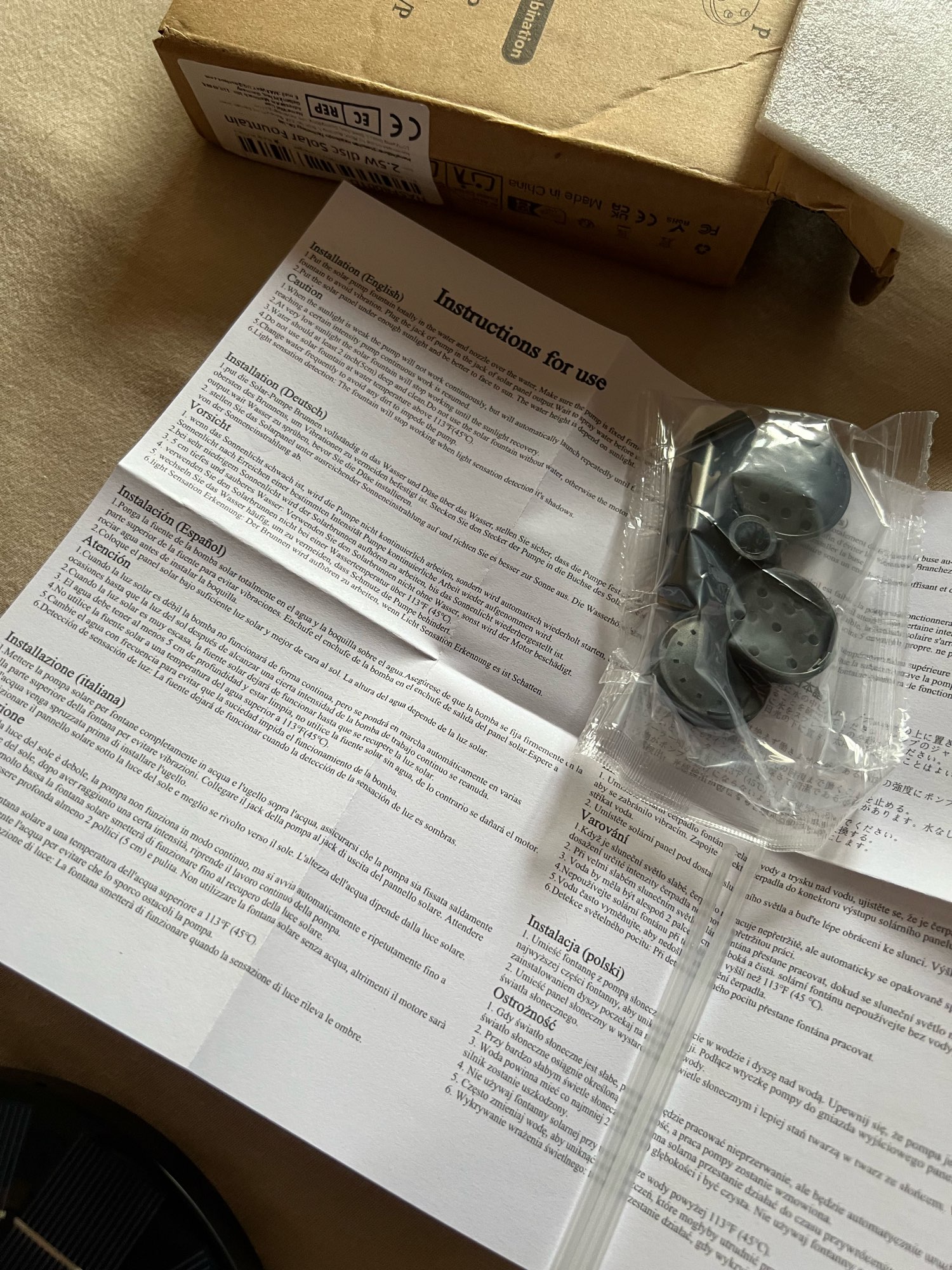 A nice fountain for sunny weather. Easy installation.