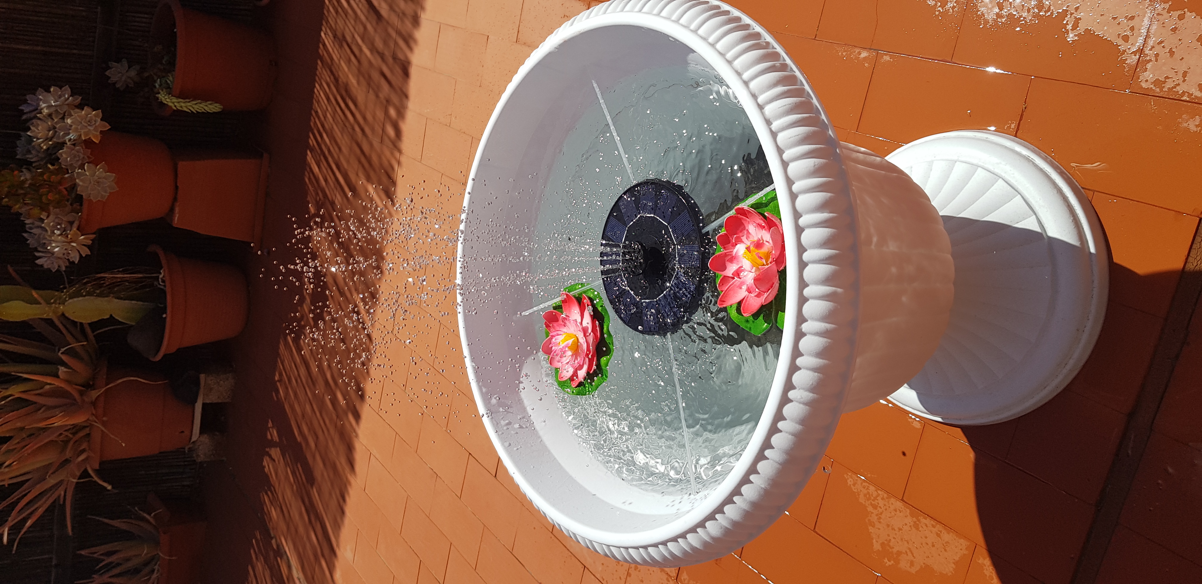 Simply great. Actually, it wasn't a very sunny day when I tested this fountain, but it still worked nicely. There are different nozzles so you can choose whether it will be one large stream or more but smaller ones. Generally a nice little fountain for the garden.