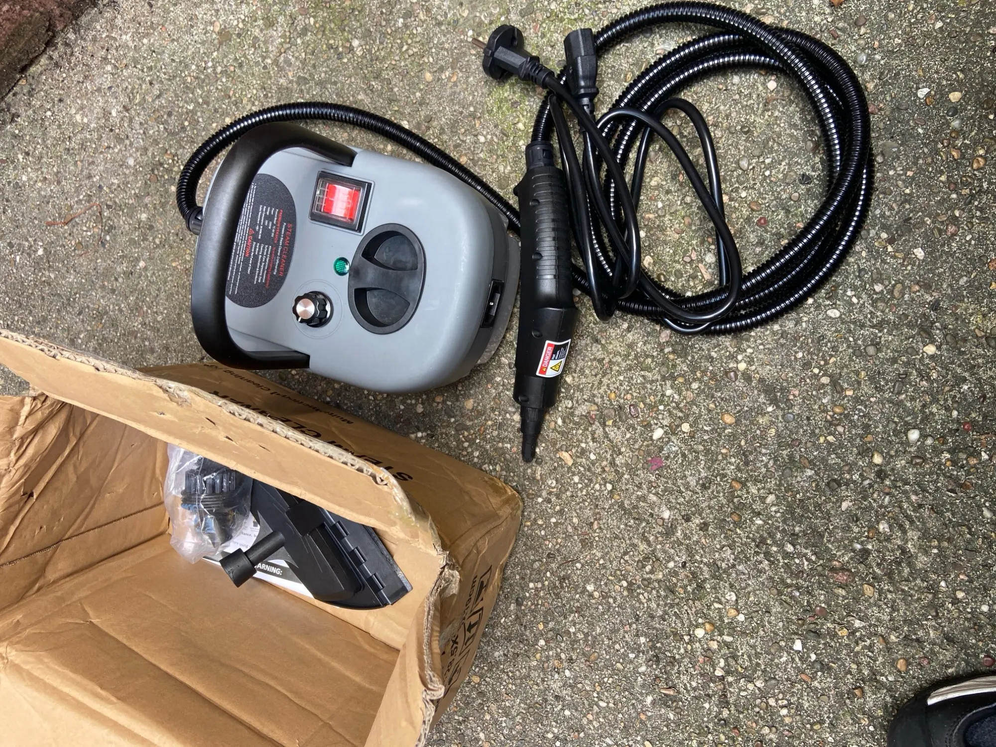 It came well packaged with 220v. Steam comes out well. I saw it moving when there's oil, but the user's technique seems important for more effective use.