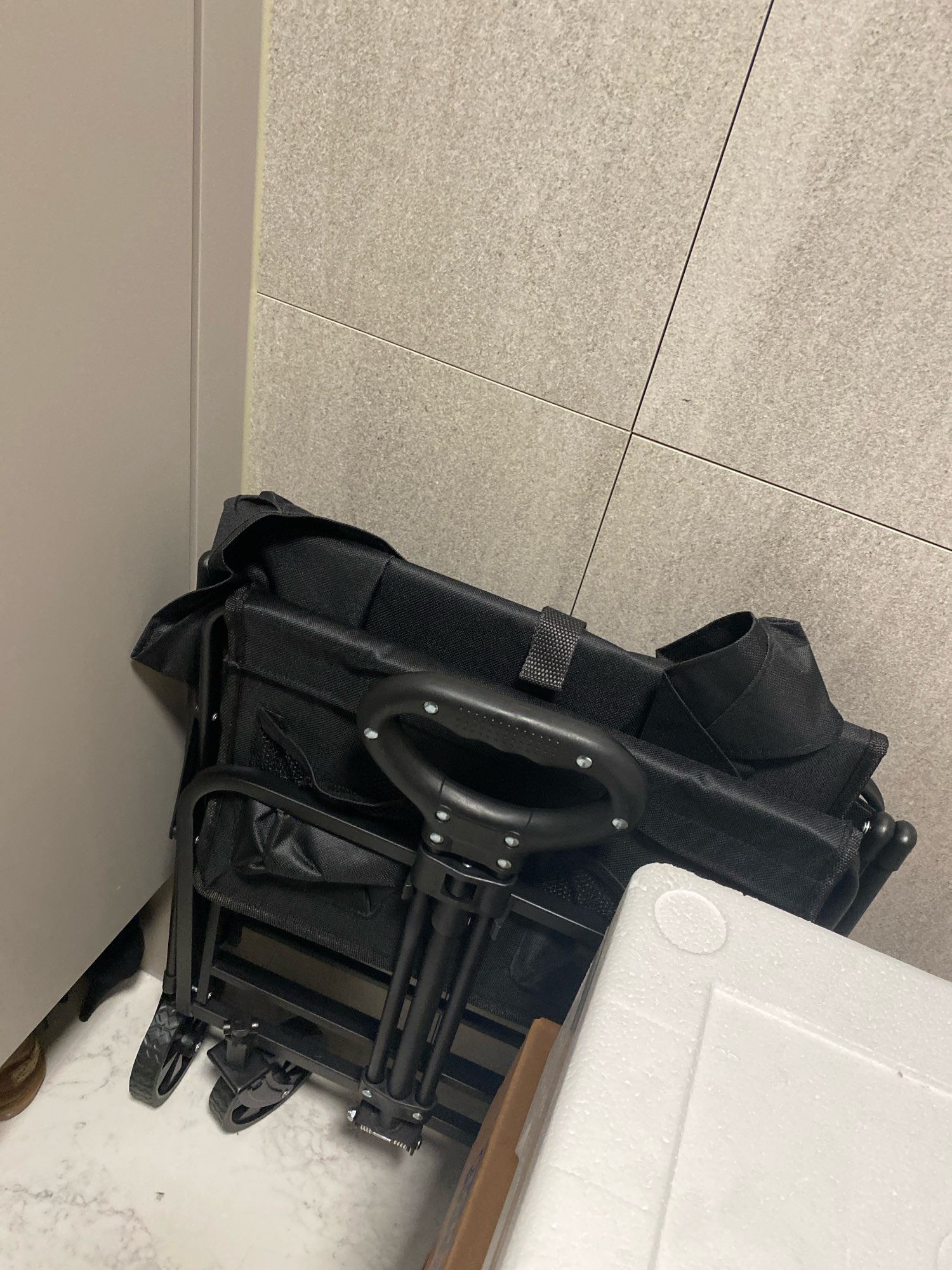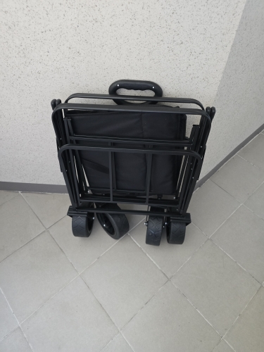 It's really convenient to be able to move a lot of items at once. I use it very well when going camping or looking at the stars. It's sturdy and the wheels roll smoothly. Since it's foldable, it's easy to store, so I'll use it often. The satisfaction level is high for the price.