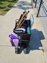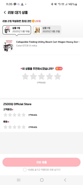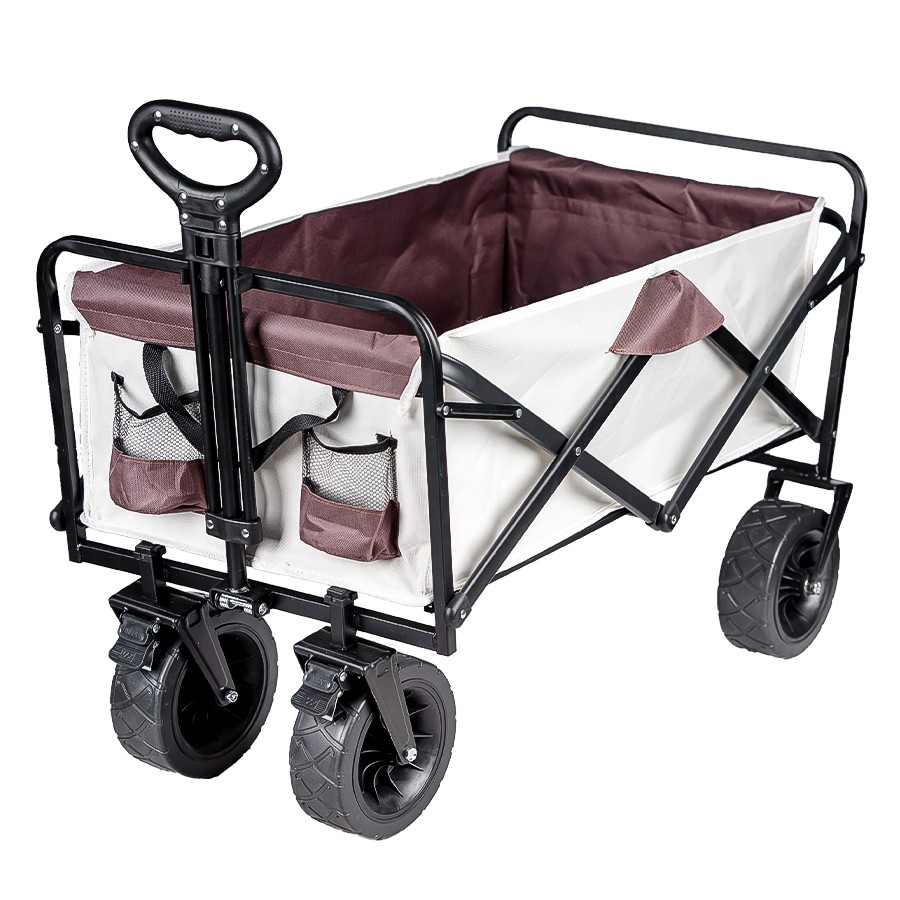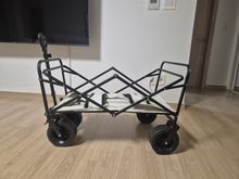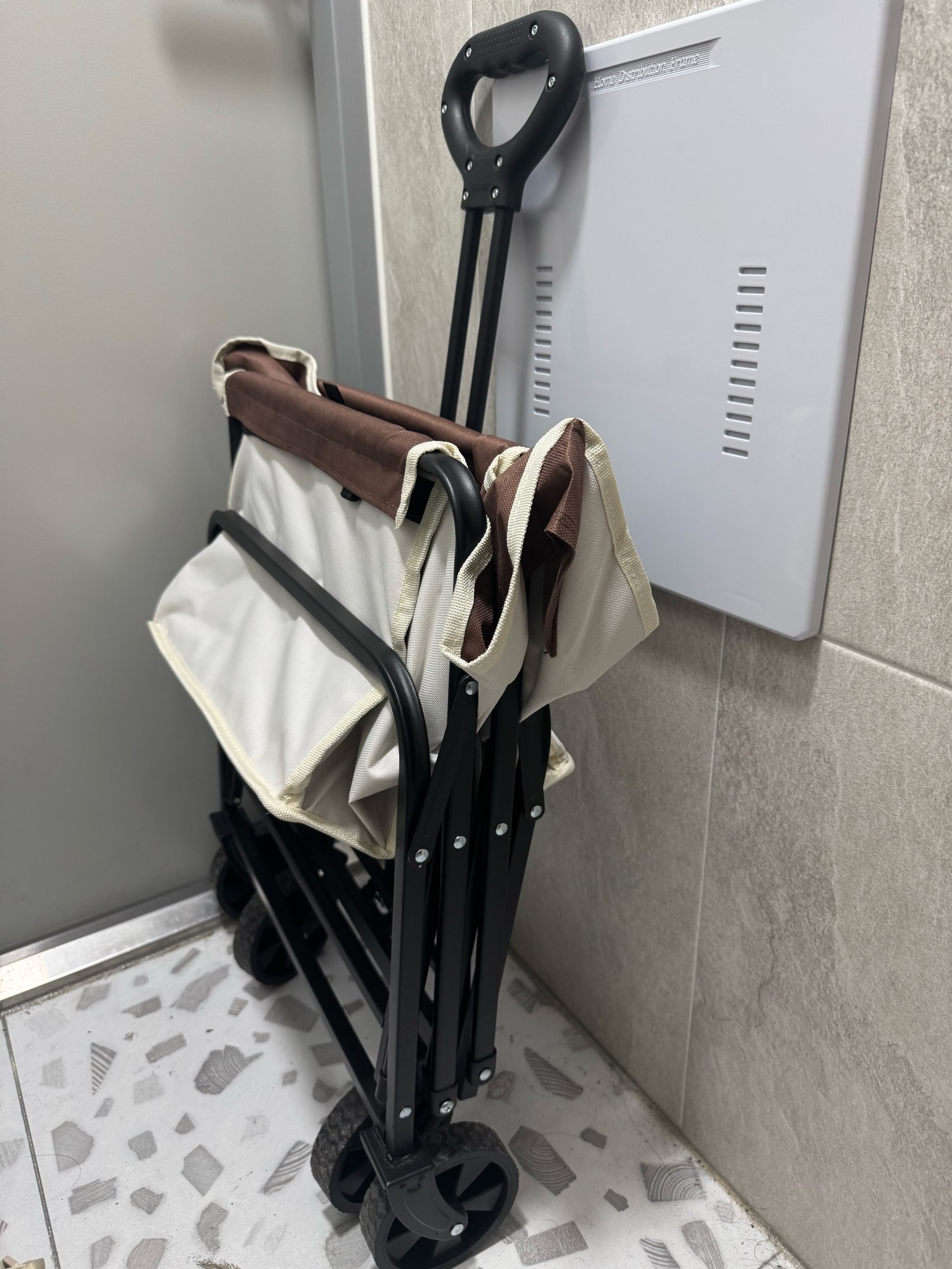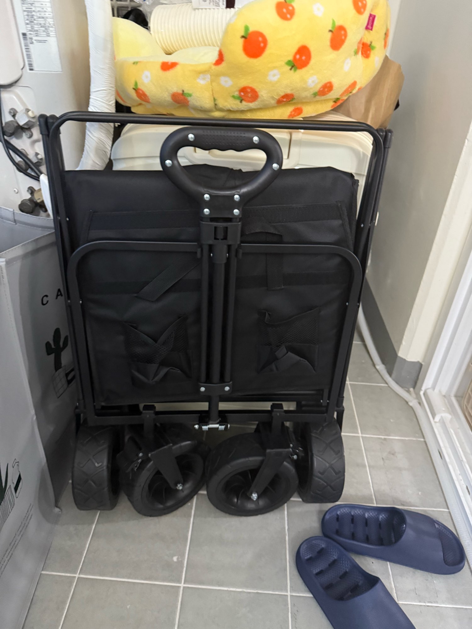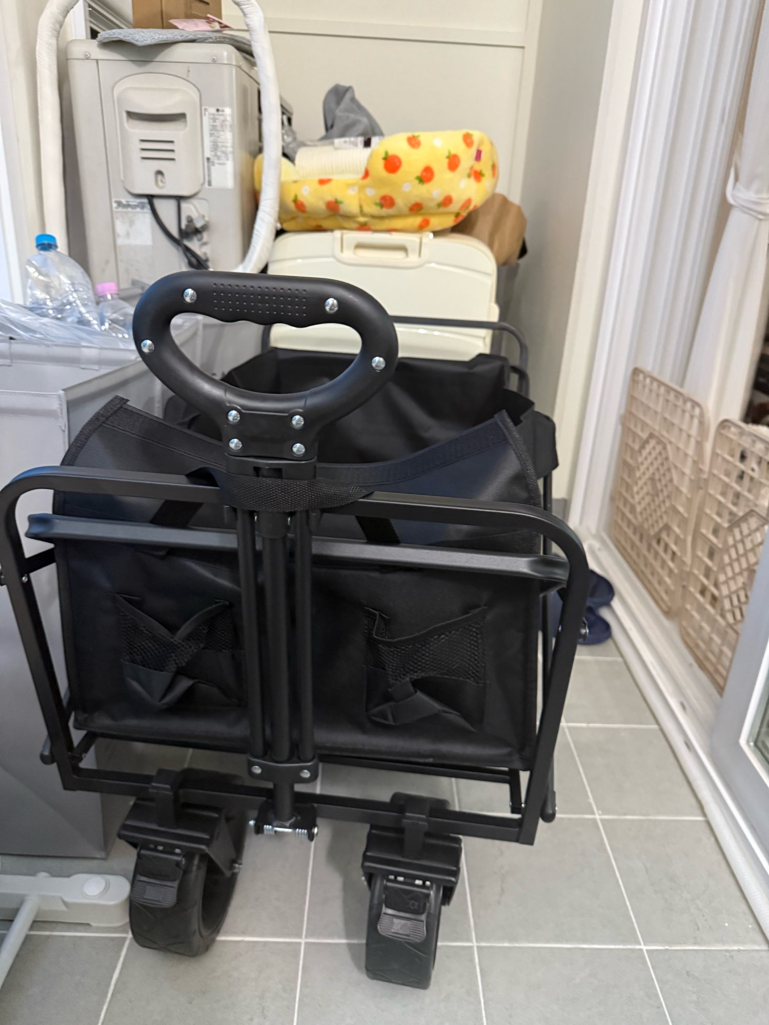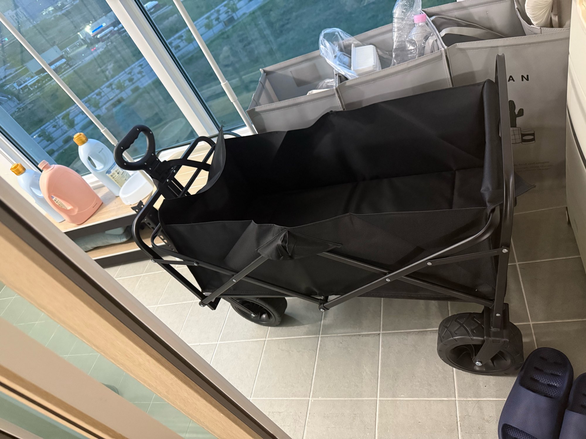 Rating: 4 stars Purchase motivation I found a foldable beach umbrella because I wanted to carry my luggage at once during camping and picnics. It feels attractive that it is easy to put in the trunk of the car and can be used in various terrains such as sand and gravel. Actual review When folded, it is compact and convenient for storage and movement, and installation took about a minute. Thanks to the durable frame and waterproof fabric, I was able to carry heavy luggage steadily, and the wide wheels allowed it to roll smoothly on the beach or bumpy areas. I was satisfied with practical details such as adjustable handle length and auxiliary pockets. It weighed around 10kg, which was manageable to carry with one hand, and it could easily carry bulky items like camping chairs and tables. Regrettable point The wheels are large and sturdy, but they are also a bit heavy, and there were products that were difficult to stand up by yourself when folded. Some products may have stiff wheels or may require more force when deeply stuck in sand. The low-priced model has differences in durability, so be sure to refer to the reviews before purchasing. One line summary A must-have item for outdoor activities with a lot of luggage, this is a foldable wagon with excellent value for money. The purchase review states that it was used in various situations such as camping, fishing, and hunting, and the satisfaction was high.