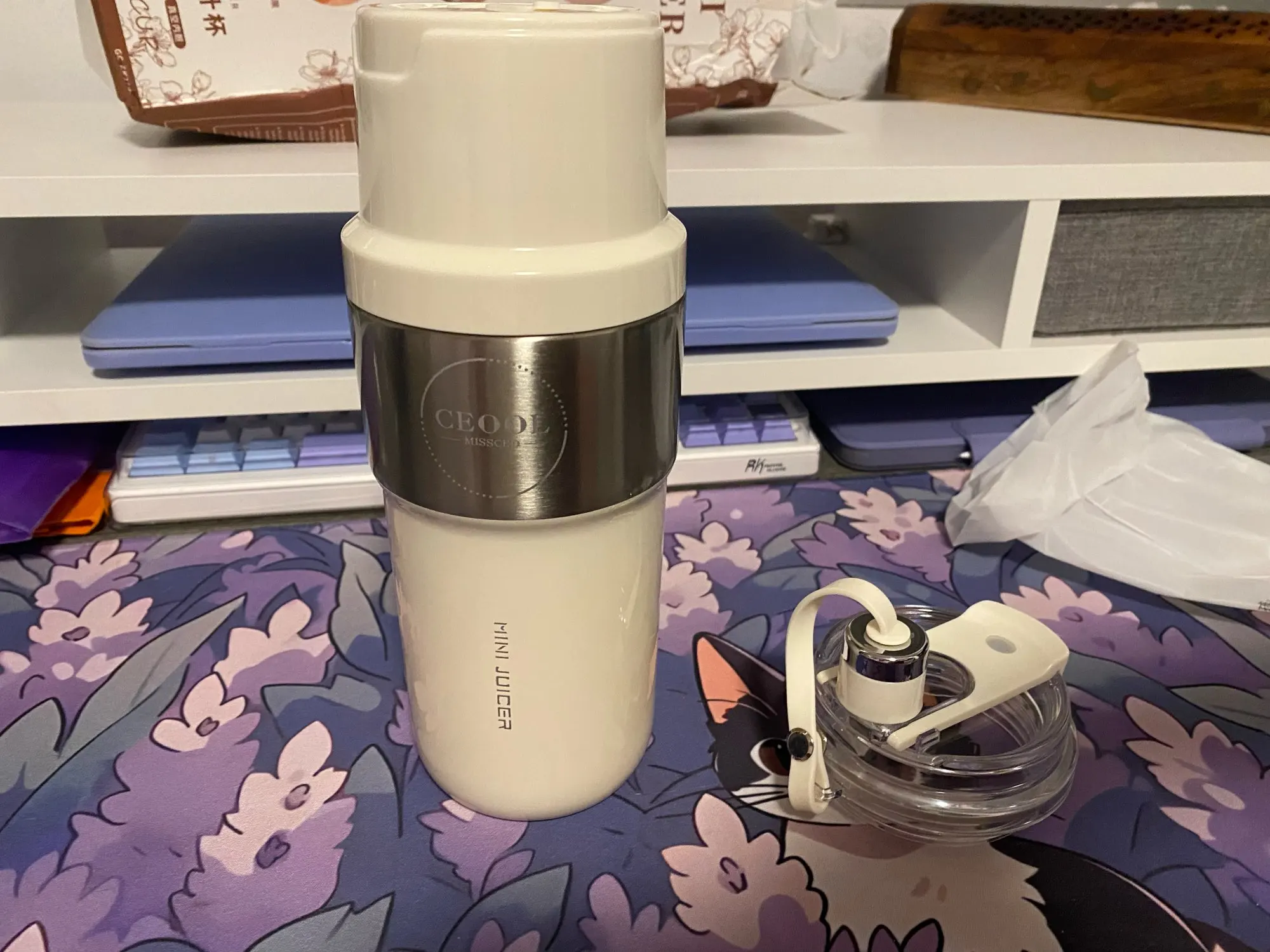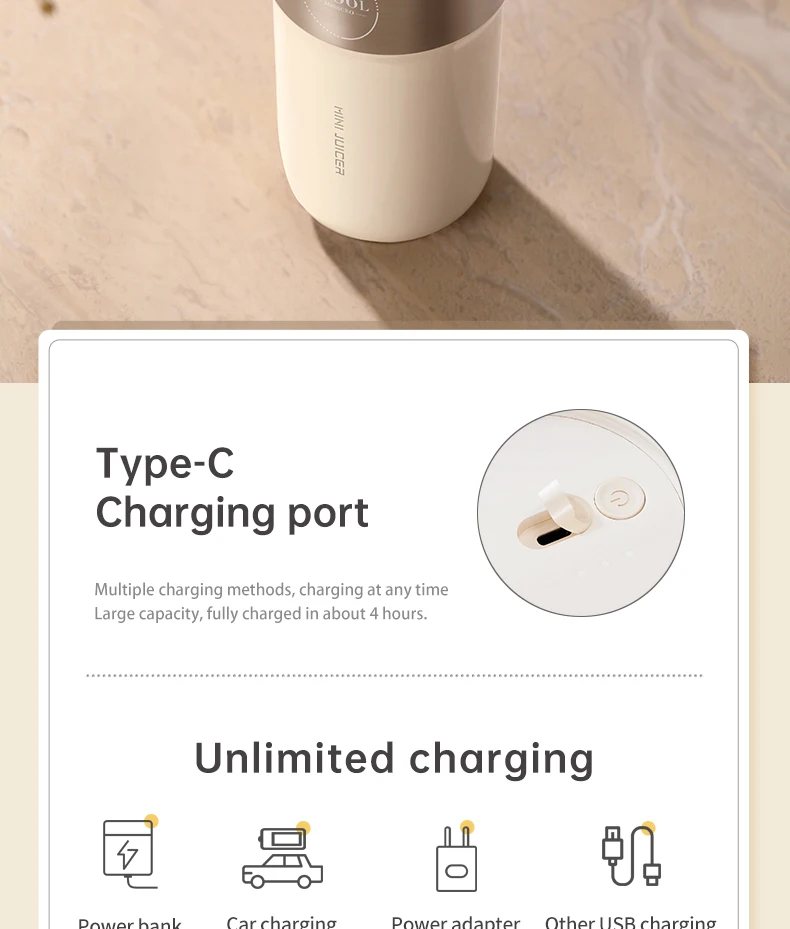 One lid is charged and can be used to make juice. The juice can be made quickly, and once it's ready, you can replace it with another lid and drink it directly. It's also very convenient to take it out of the house