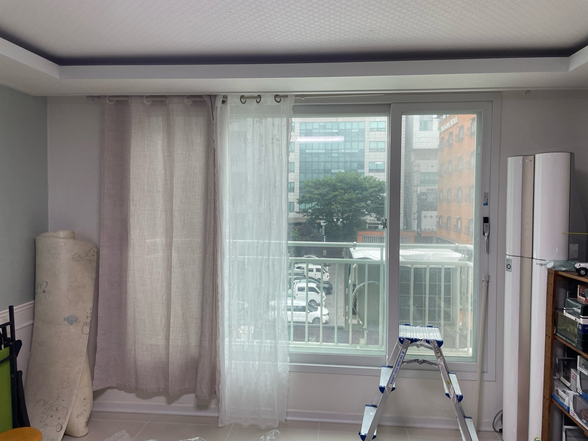 It doesn't wrinkle, the color is nice and goes well with anything, it's cost-effective, and it's light, so it doesn't take much weight, so it can be easily installed with a compression rod. I installed it in a small room and liked it, so I ordered more and installed it in other rooms as well.