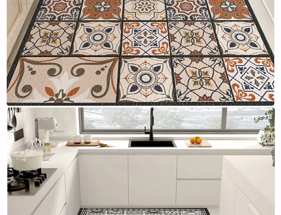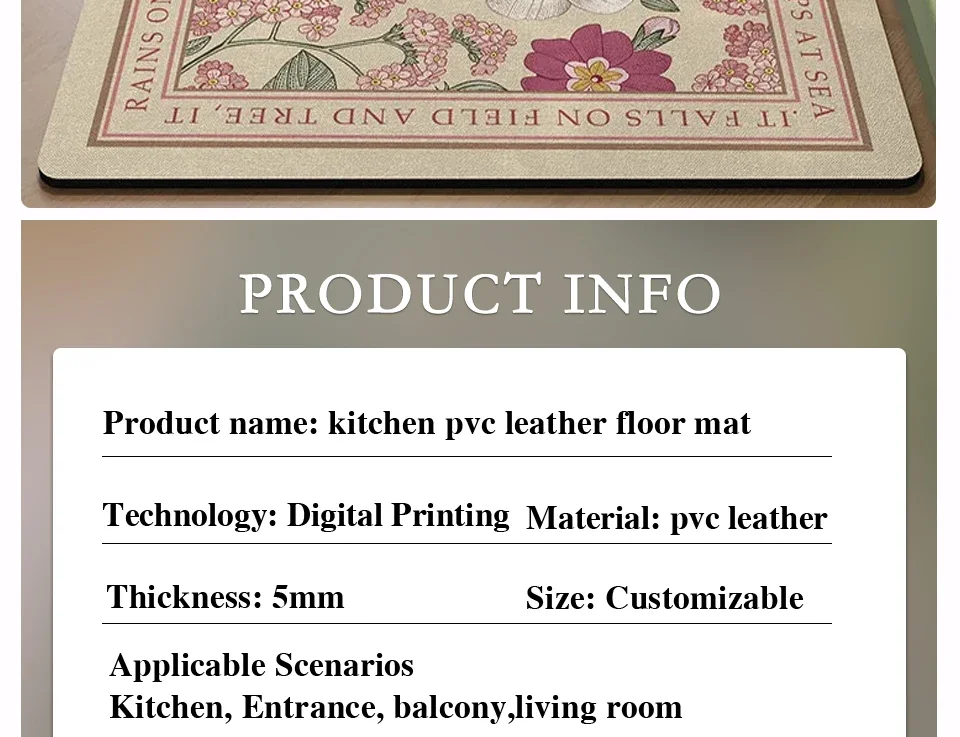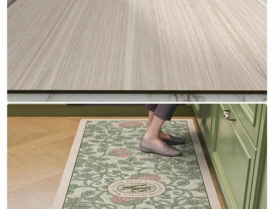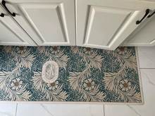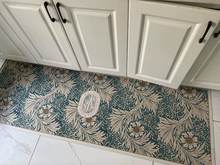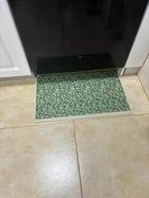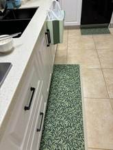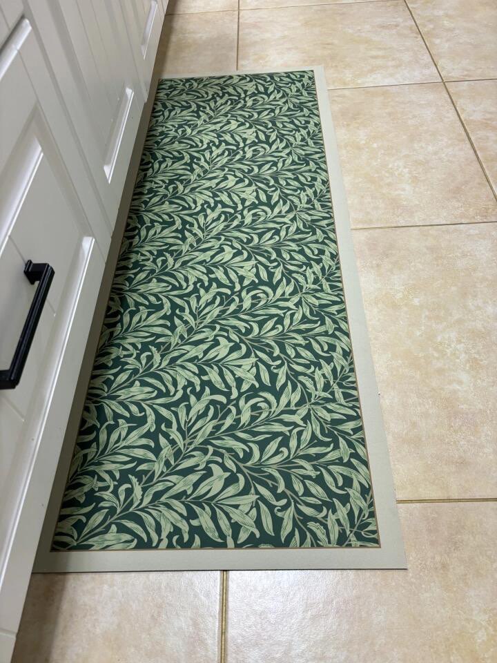 The green pattern is beautiful, and the size is perfect; it fits just right in the kitchen. It's waterproof and oil-proof, and very easy to clean. My mom loves this rug.