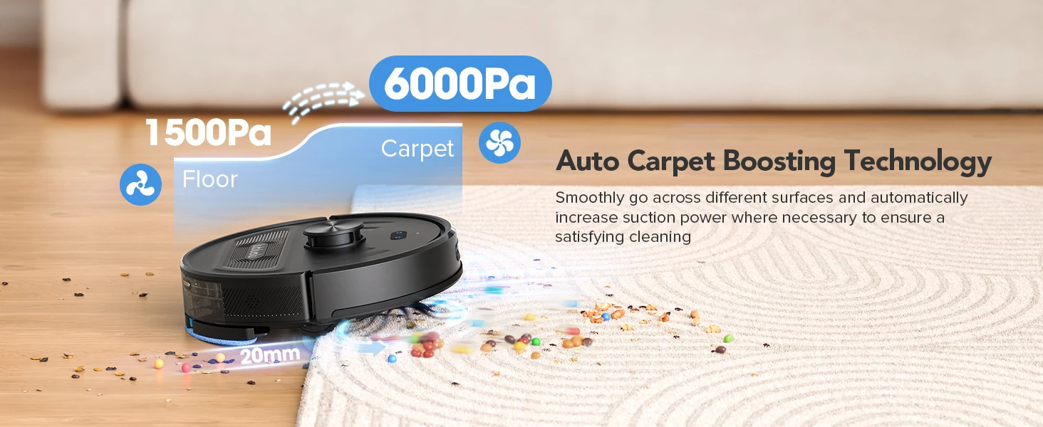 Auto Carpet Boost: Intelligently increases suction on carpeted areas
