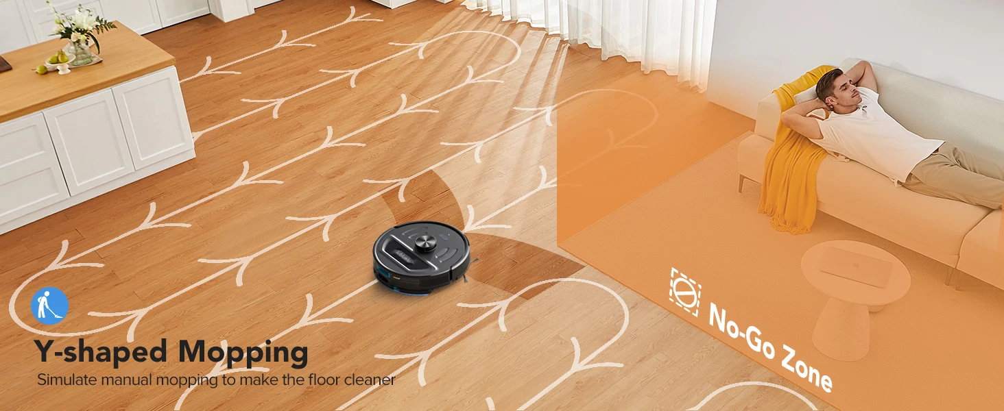 Y-Shape Mopping Pattern: Provides thorough cleaning coverage