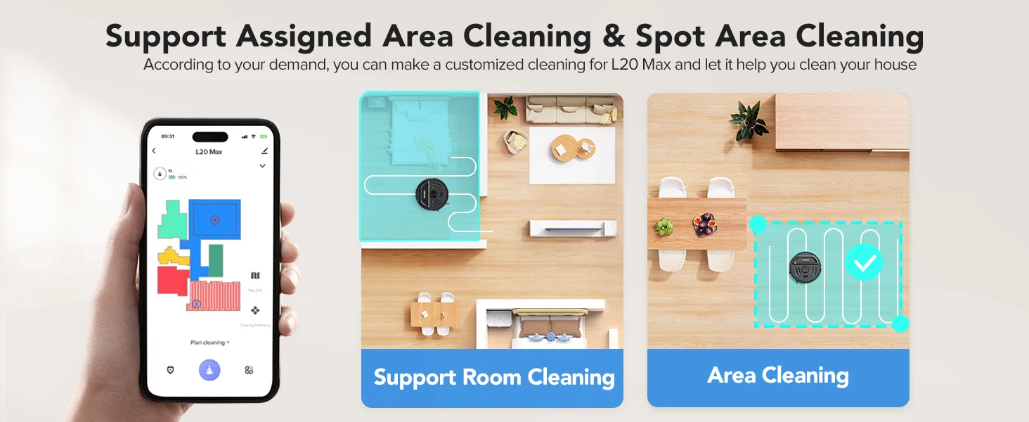 3-in-1 Cleaning System: Combines vacuuming, sweeping and mopping in one cycle
