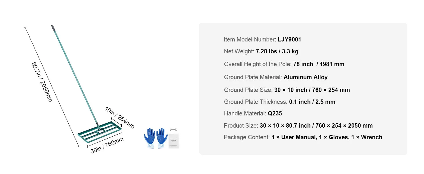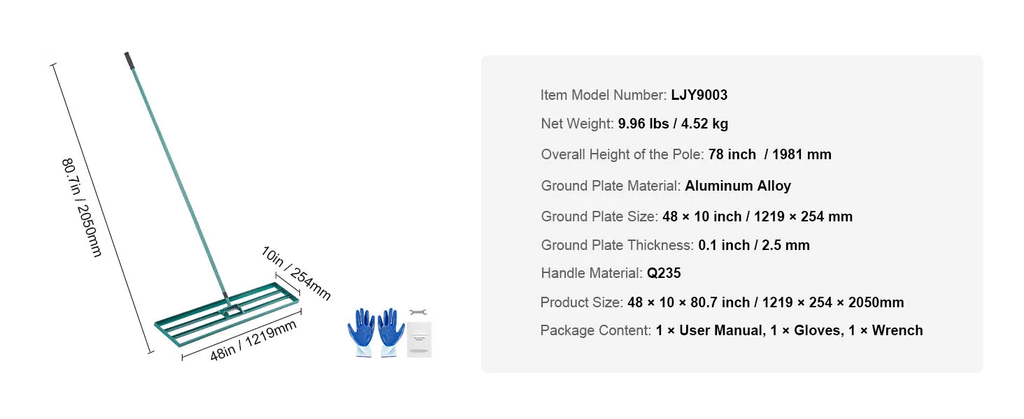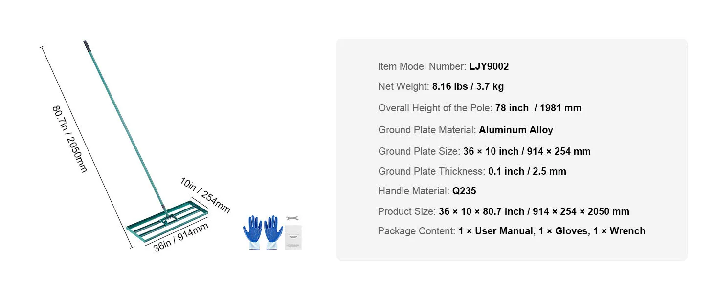 Big lawn leveling rake to smooth your lawn. Easy assemply and usage. Size for big areas to level.