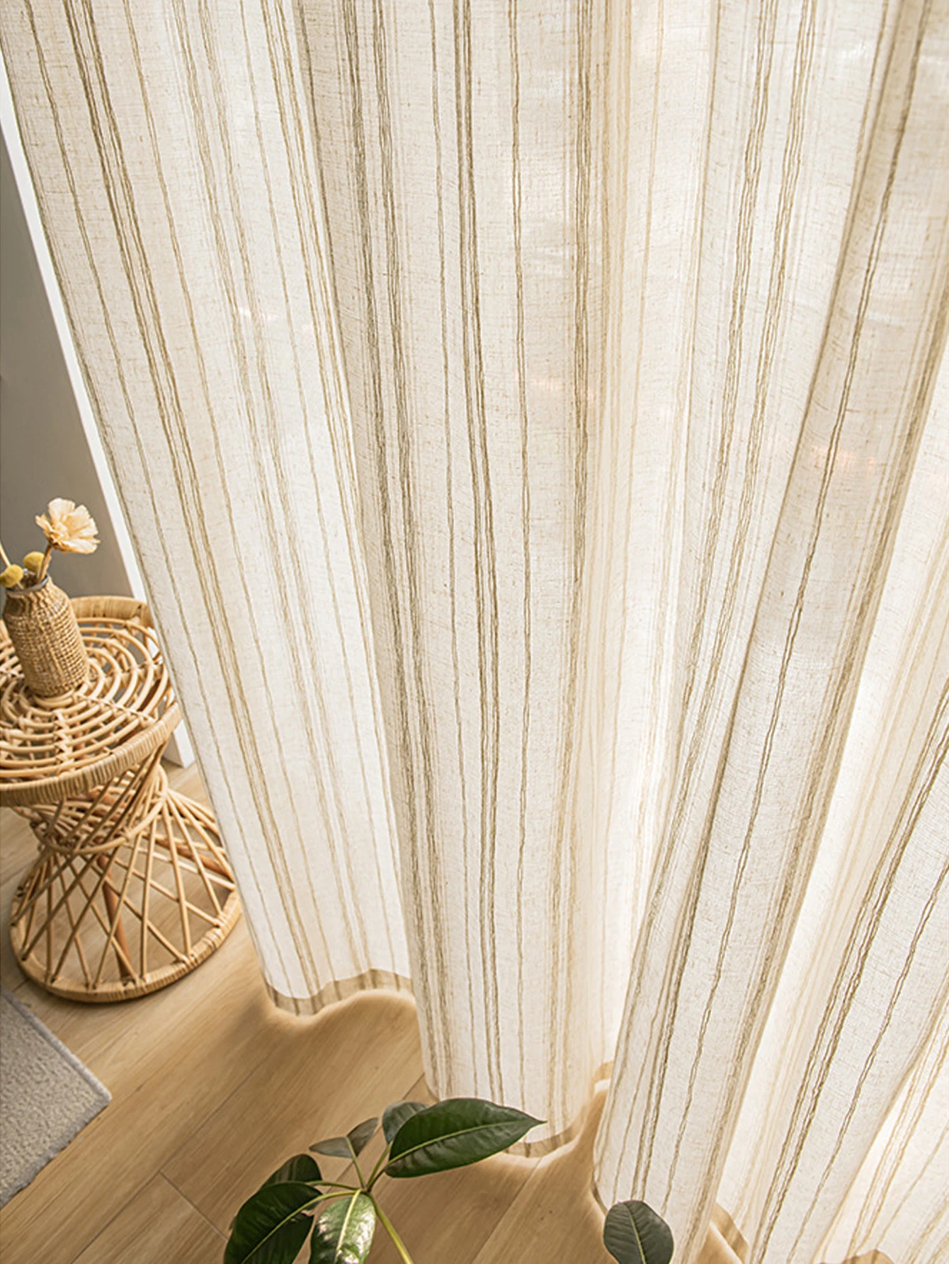 It's neat and pretty, doesn't have any strange smell, and can be used right away. The material is linen, so it's thin and transparent. I wasn't looking for blackout, so I'm satisfied.