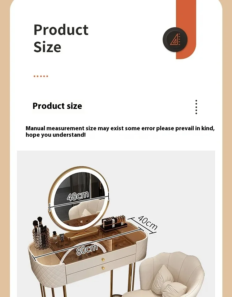 This dressing table has completely cured my procrastination! Sitting here doing makeup every day feels like checking in at a coffee shop. The led light has three color temperatures to choose from, and i'm no longer afraid of getting a yellow face when taking night photos. The drawer comes with a jewelry compartment, so i finally don't have to search for needles in a haystack among necklaces. The mirror just makes my face look a bit small, and my best friend said i've been taking selfies swollen lately