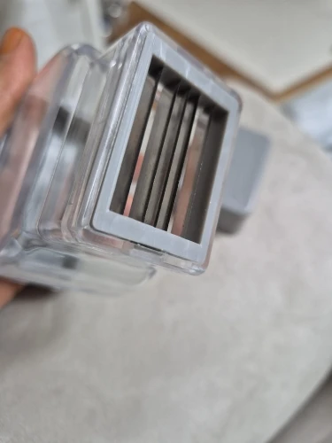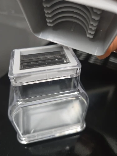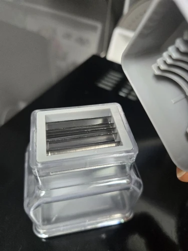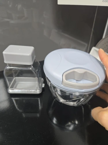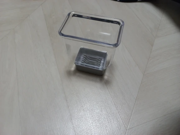 Oh... this is the best garlic paste I've ever tried. Above all, it's about pressing from above. The cut pieces fit perfectly into the container, which is great! This has a lid when you press the garlic, you need to put the garlic on it and press down. The garlic is cut well. Just place the garlic on the cutting board and press down. It gets caught between the blades. You have to put the garlic inside the lid and press it down. I cut one piece, then opened the lid again, put it back on, and cut it again haha. It seems like it would be a hassle. You just need to press the button above. It's much better than what I used before! Highly recommended for households with a lot of garlic to chop!