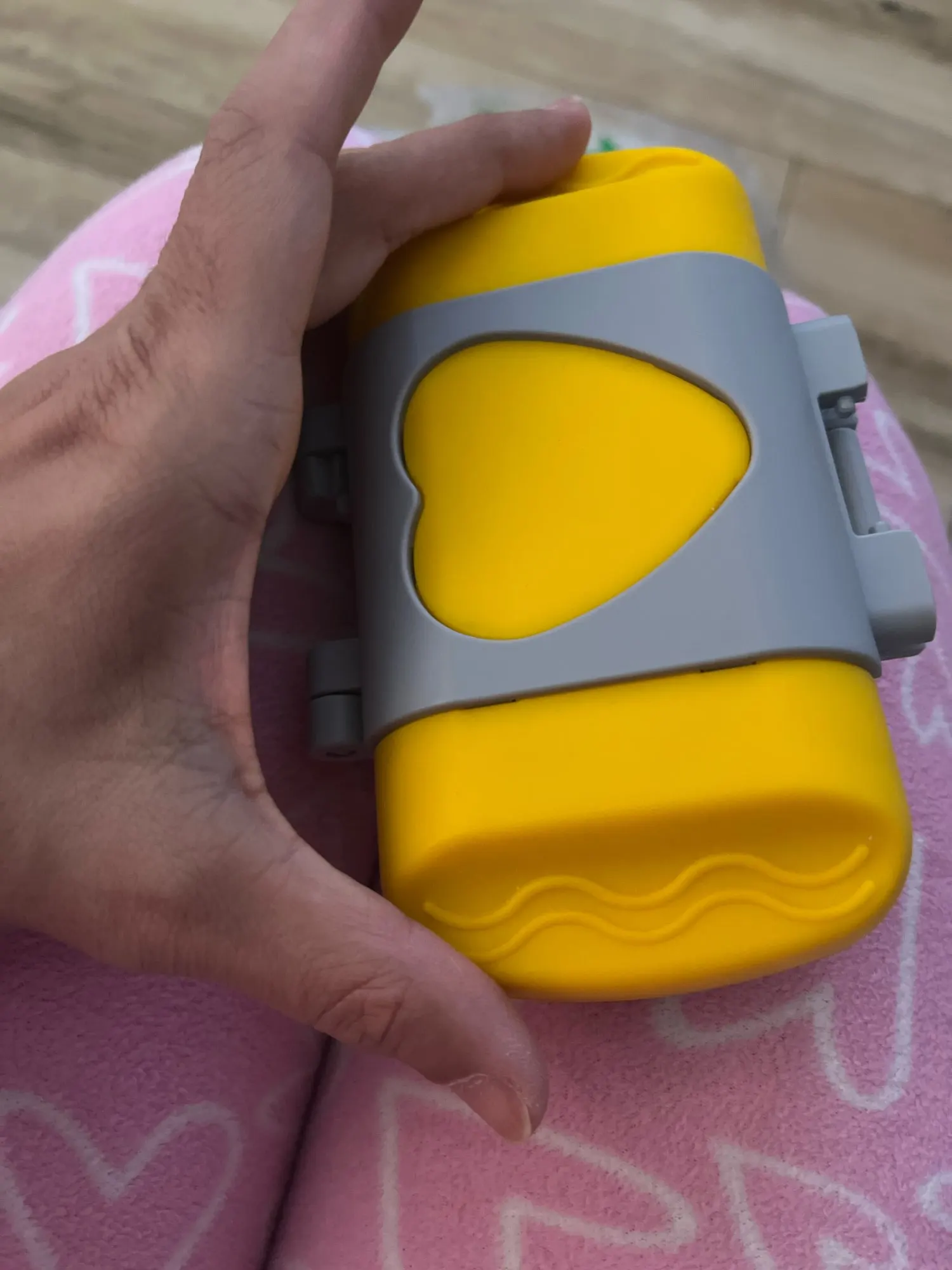 Very beautiful, it's silicone on the outside and metal on the inside, it's lightweight. I confess I was worried if it would work, but it's amazing. I made stuffed bread with it and it turned out great. You can buy it without fear! And now I can take a snack to work and eat something warm and toasted!