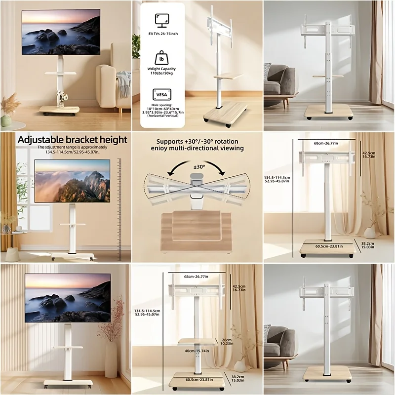 I raised it to 55 inches and it's good. Highly recommended. You can assemble it step by step according to the assembly order. Assembly may be difficult or easy. The left and right angles can be adjusted, and speakers can be placed on the middle shelf, which is nice.^^