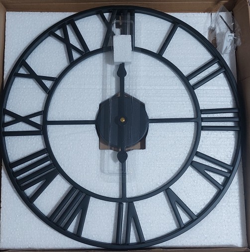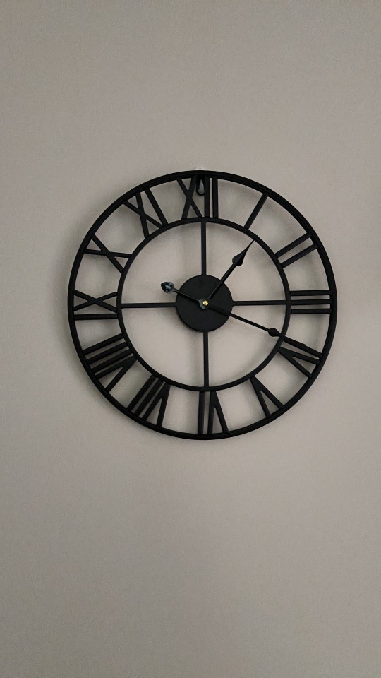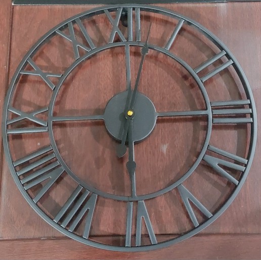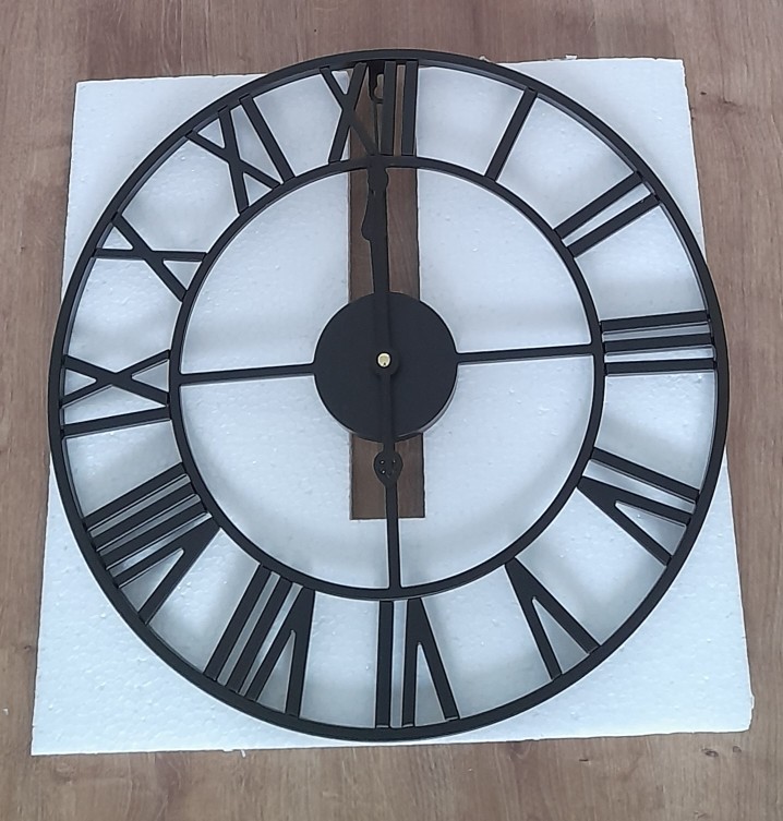 3. This metal clock is a perfect center piece for your home with its large cut-out roman numerals.