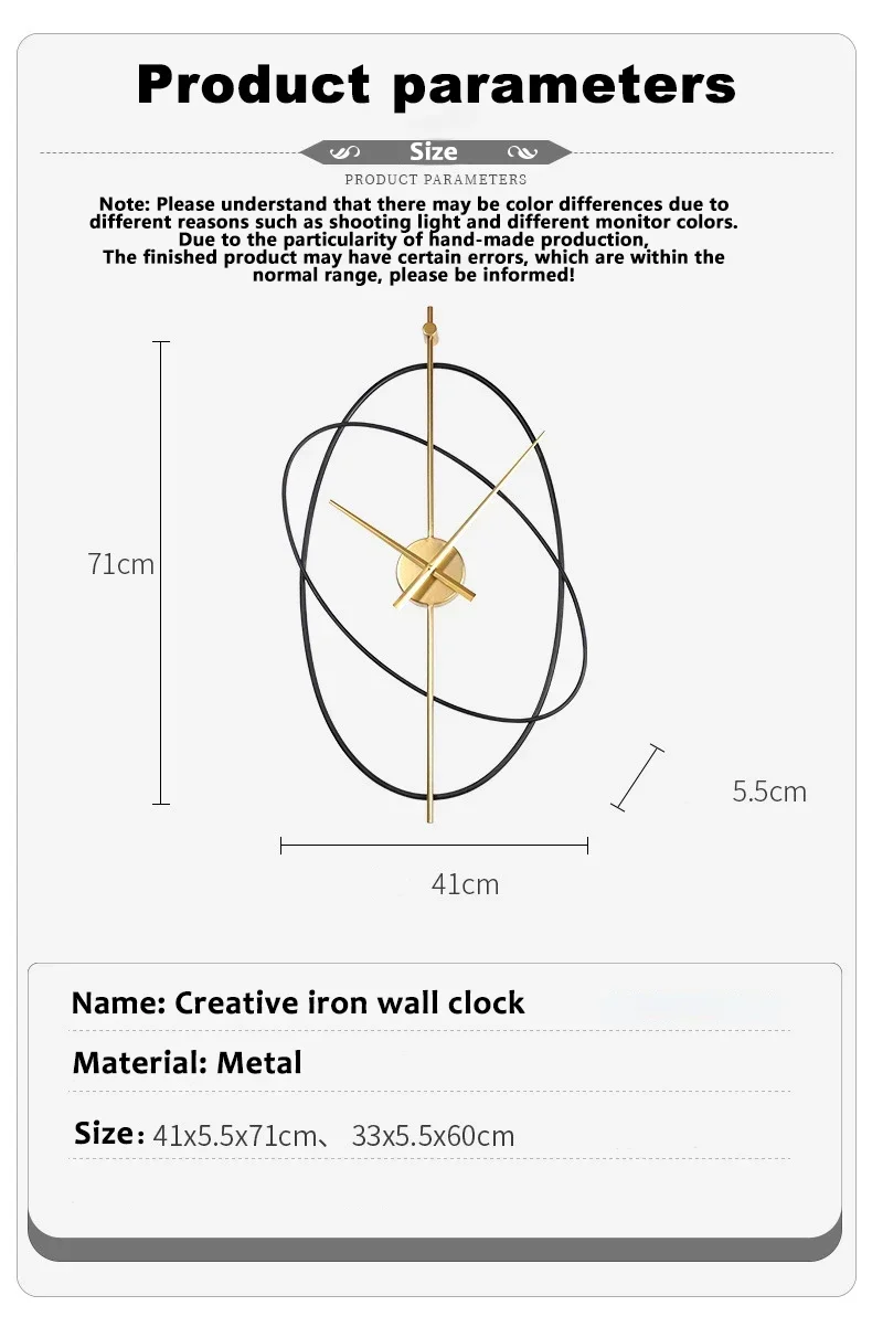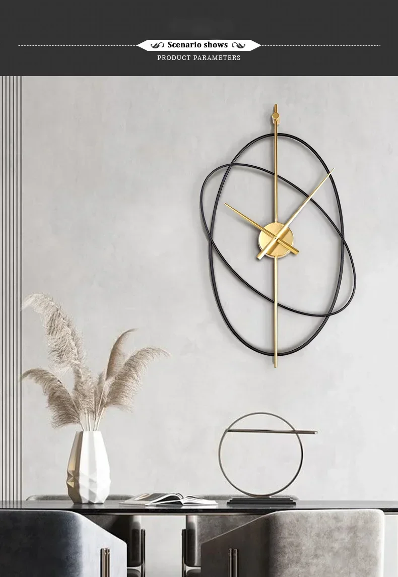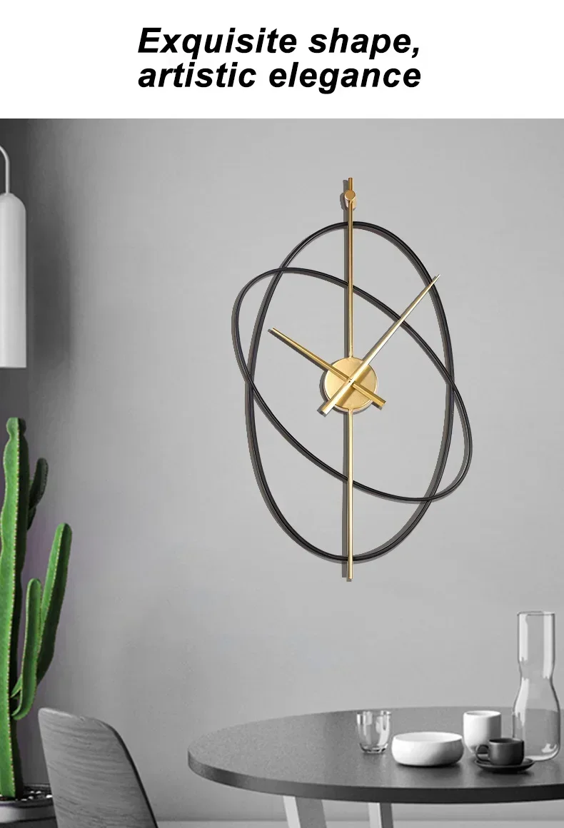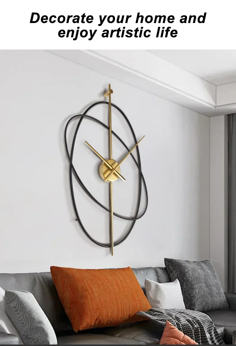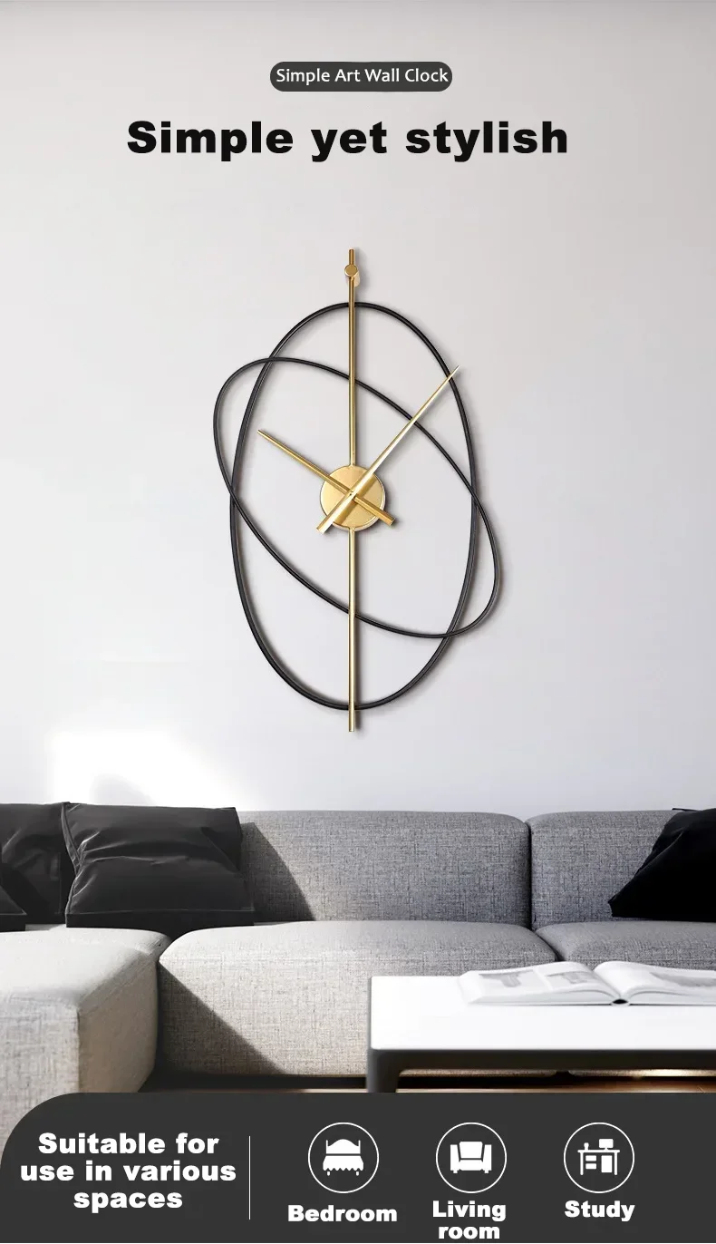 Modern Wall Clock Metal Oval Silent