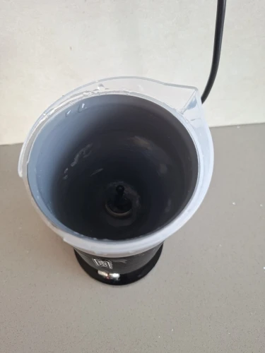 It makes the best possible milk foam. On the picture is the hot froth with thick foam. 1dcl of milk and you get so much foam.
