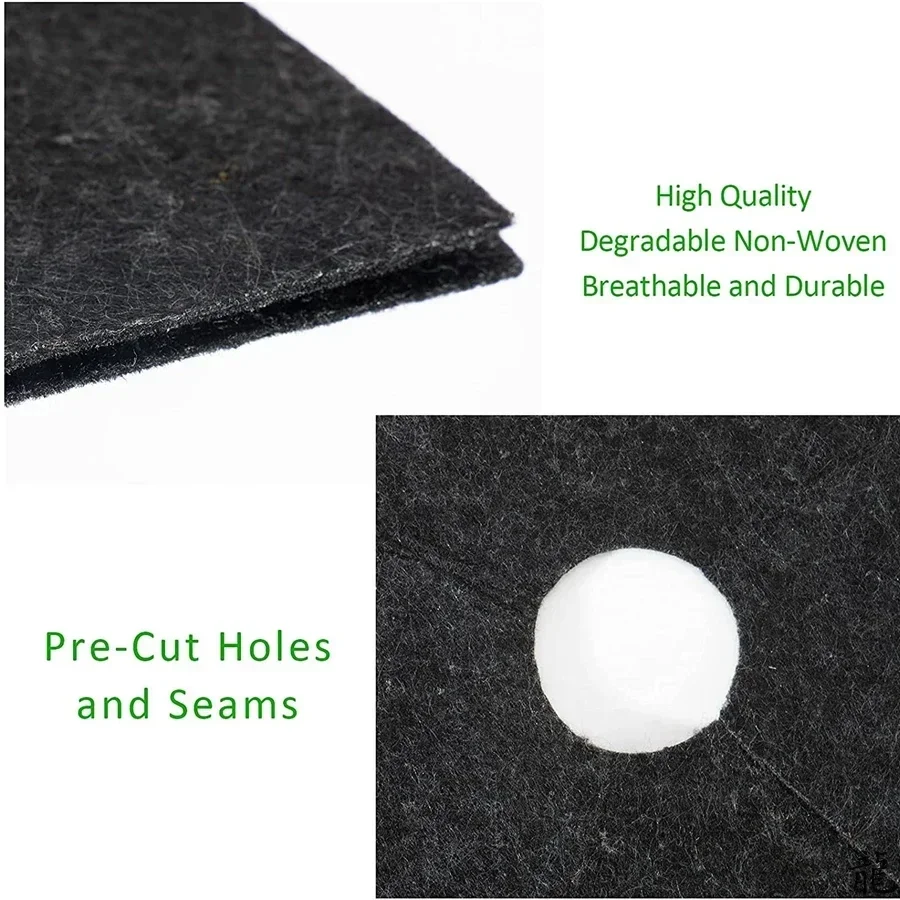 Decent thickness of felt material. Fits perfectly with my existing fabric pots to protect them from weeds and the winter cold.