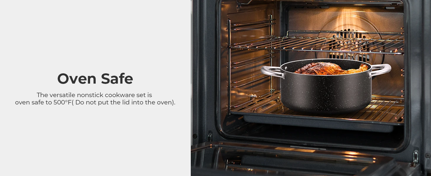 • Stovetop Flexibility: Compatible with all stovetops, including induction, gas, electric, and ceramic, our versatile pan set offers freedom in the kitchen. Oven-safe up to a 450℉