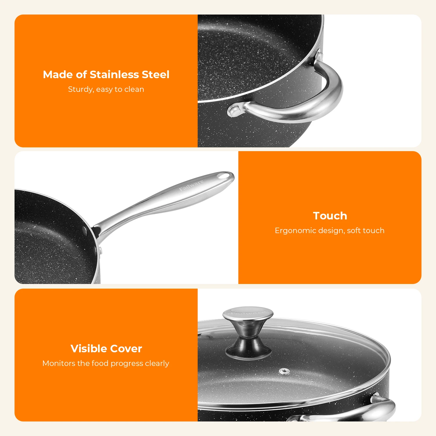 • See-Through, Tight-Seal Lids: Our tight-seal glass lids enhance cooking efficiency and allow you to monitor your culinary creations without losing heat
