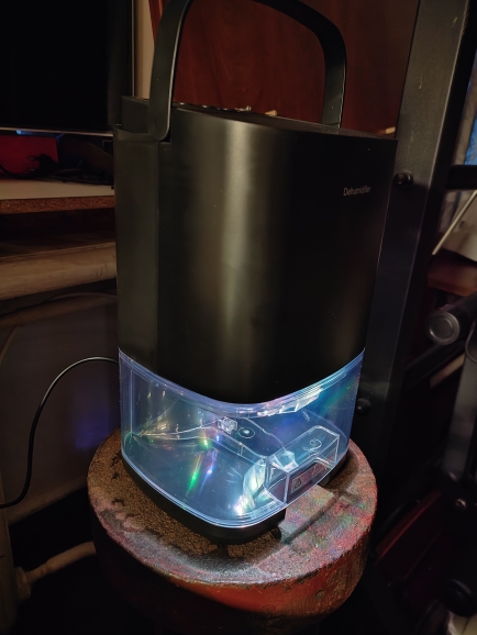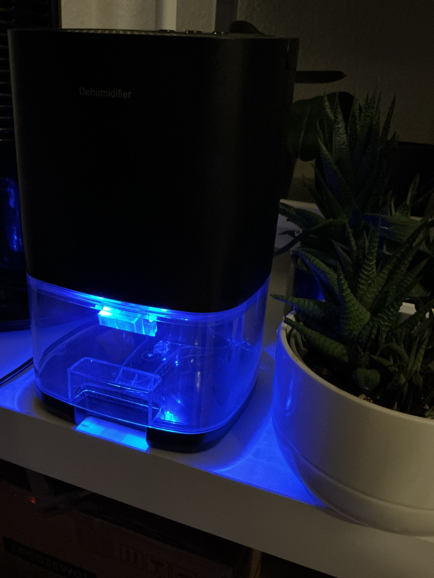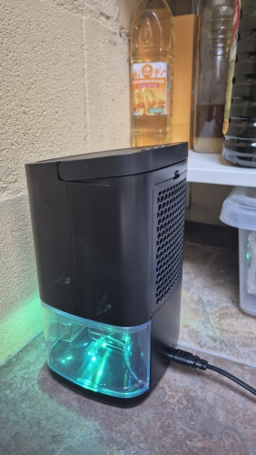 A very good dehumidifier. It is very compact, but works very efficiently and quietly. It has a backlight (for aesthetics) and a night mode that is much quieter than the regular mode.