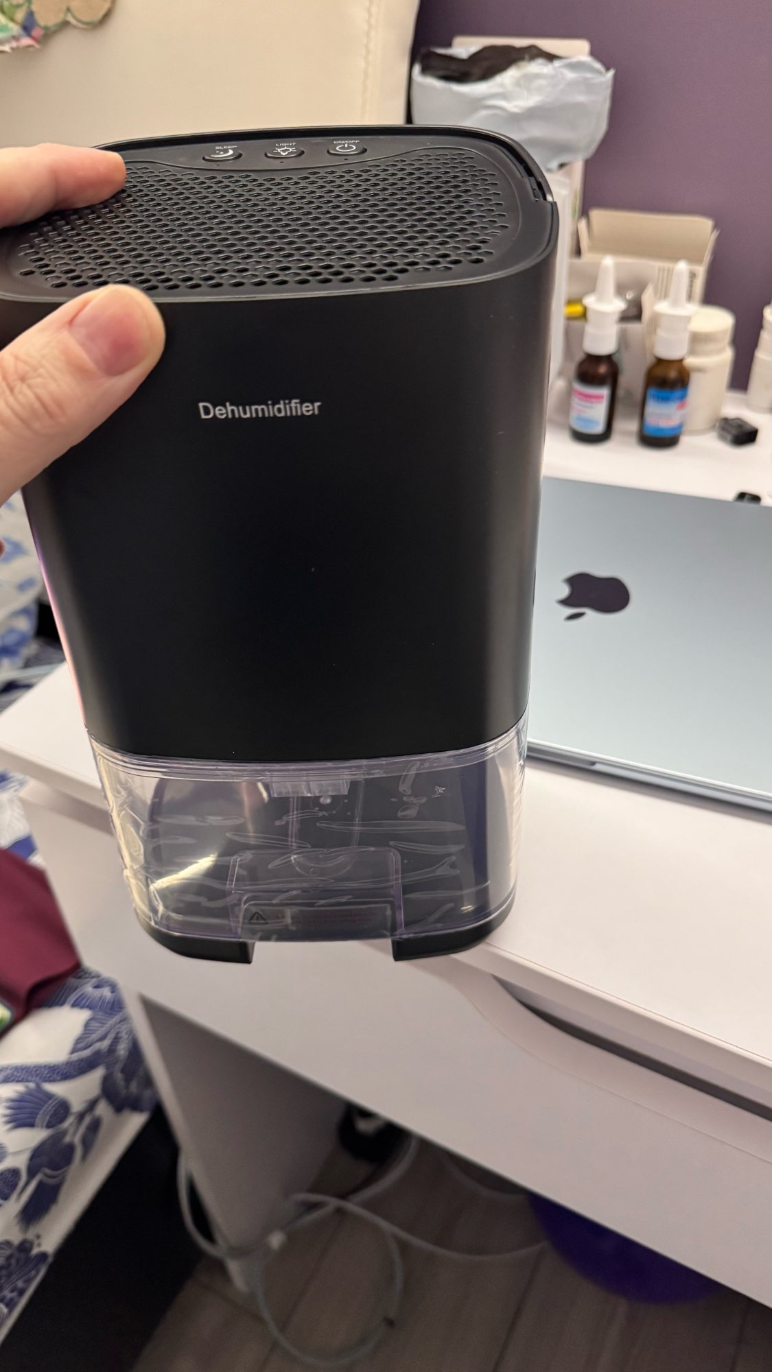 As a person who actually reads reviews i will try to give my opinion. It is very small but good enough for a room, and it does the job! I feel very happy with my purchase since i was struggling with humidity. I really appreciate that it has light and also i adore that it has a night mode. It does make a sound but it’s lighter than the normal mode so it allows me to sleep. I would definitely recommend it. I also like how easy it is to take out the tray and get rid of the water, doesn’t give me any issues to get it out or put it back. For people who like the light, its nice you can change different colours and it can be more or less intense but the noise it makes its annoying if you try to sleep with it. Seems pretty obvious but i’m telling you in case you wanted to know about it. Overall happy with this purchase..