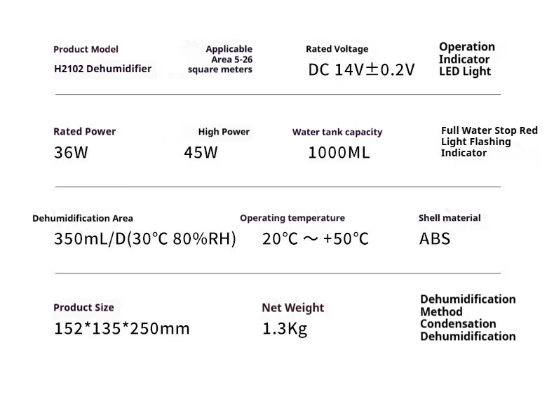 Recommended dehumidifier, it is small but of very good quality, in night mode it doesn't make much noise and removes a lot of water.